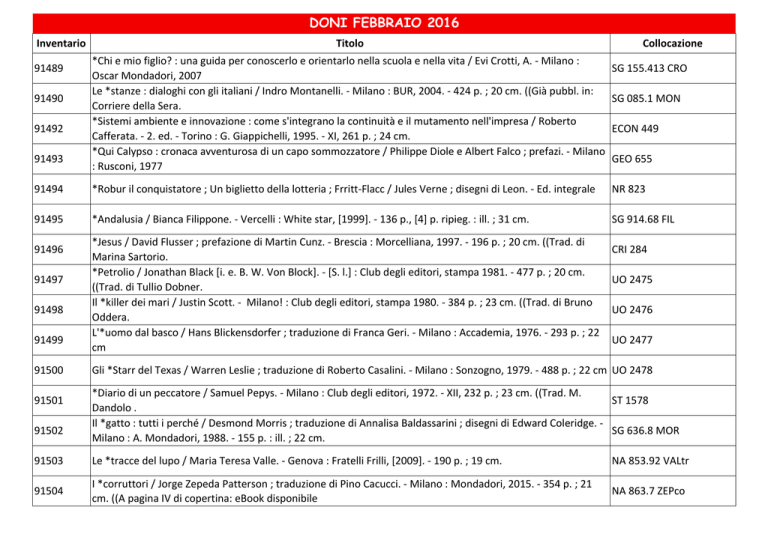 doni febbraio 2016 - Biblioteca Civica Leonardo Lagorio