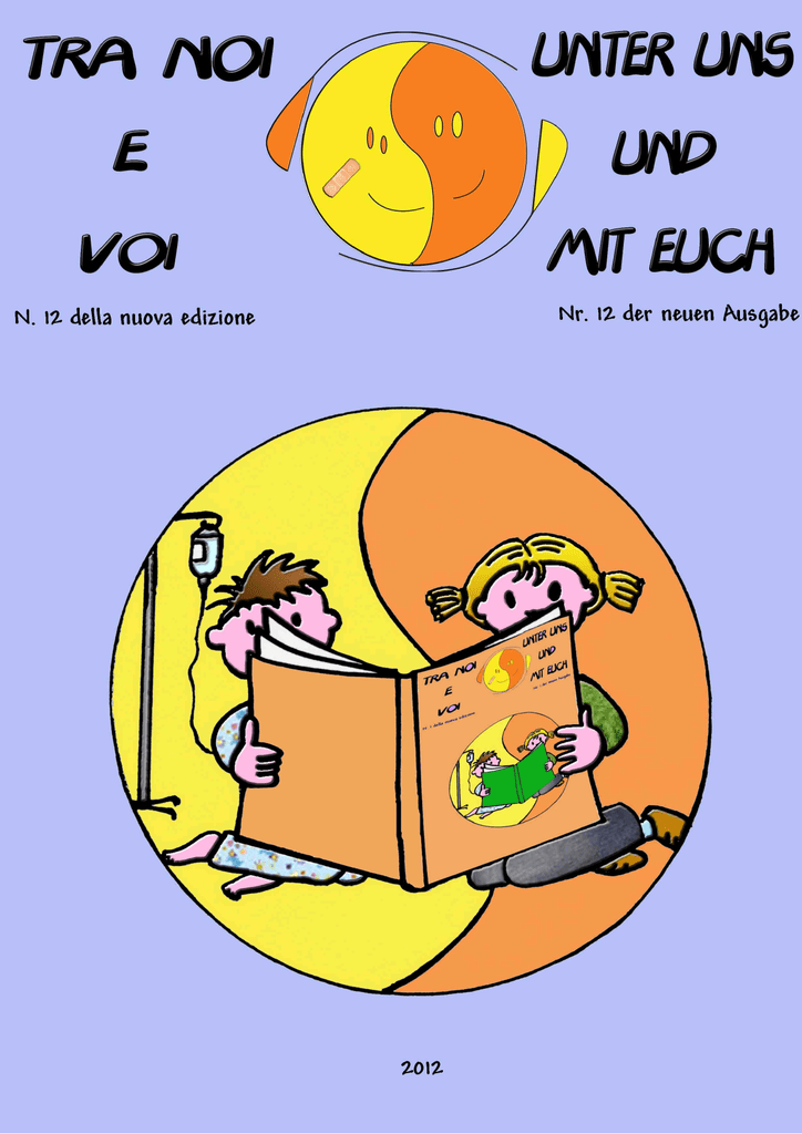 Semestrale d'informazione a cura del Circolo Culturale Don Bosco Direttore responsabile: dott.ssa Francesca Lazzaro Registrazione presso il Tribunale di Bolzano, nr. 15 del 3.12.2007 Proprietario: Circolo Culturale Don Bosco Editore: Circolo Culturale Don Bosco Biblioteca per ragazzi “Sandro Amadori” P.zza don Bosco, 21 39100 Bolzano Tel./Fax 0471-921877 www.circolodonbosco.bz.it e.mail: [email protected] Logo in testa alla copertina: Elisabeth Fugatti Elaborazione grafica e loghi: Chiara Giordani Stampa: Centro stampa del Comprensorio Sanitario di Bolzano dell’Azienda Sanitaria dell’Alto Adige Hanno collaborato alla realizzazione di questo numero: La scuola dei reparti di Pediatria e Chirurgia Pediatrica dell’Ospedale di Bolzano; Alunni delle classi 4° e 5° della Scuola elementare Dante Alighieri di Bolzano; 2 3 4 5 Pierino dice alla maestra : Signora maestra, si può punire una persona per una cosa che non ha fatto ? Maestra : “ No di certo!” Pierino : “Bene... allora non ho fatto i compiti.” Pierino dice alla mamma : Mamma ..oggi a scuola abbiamo imparato parole sconosciute! Mamma : bravi come avete fatto ?? Pierino :abbiamo messo delle puntine sulla sedia del maestro... Un serpente dice a un altro serpente:”Quella vipera di mia moglie mi ha lasciato...ma ritornerà da me strisciando!!!” I bambini della classe 5°A-Scuola Dante Alighieri 6 7 L' anemia falciforme ( o drepanocitosi) L'anemia falciforme è una malattia genetica del sangue, cosi definita per la caratteristica forma a falce assunta dai globuli rossi. I globuli rossi falciformi sono un grosso ostacolo al normale transito degli eritrociti all'interno dei vasi capillari, perchè formano ingorghi alla circolazione. Le cellule falciformi sono più fragili di quelle normali e possono determinare una grave forma anemica. Infatti i globuli rossi falciformi vivono una vita media di 10-20 giorni rispetto ai 4 mesi di quelli normali. L'anemia falciforme è presente sin dalla nascita ed è una malattia ereditaria. I portatori sani del gene mutato per l'anemia falciforme sono facilmente indentificabili con un semplice esame del sangue ed è possibile effettuare la diagnosi prenatale. 8 Io mi chiamo Yassin e ho 14 anni. Da quando sono piccolo so di essere ammalato di una forma di anemia. I dottori mi dicono sempre di stare attento. Ad esempio: non devo sudare tanto, se vado in piscina non devo stare troppo in acqua e l'acqua non deve essere troppo fredda..... Io cerco di stare molto attento a tutto, ma a me piace tanto giocare a calcio...ma a calcio si suda!!!!!!! Quindi io gioco a calcio ma: bevo tanto e faccio delle pause così riesco a fare ciò che mi piace. Dato che una delle cure è proprio bere tanta acqua adesso io vado a ...bere!!!!! Yassin, 14 anni Pediatria 9 LA SCUOLA DELL DELL‘‘OSPEDALE DI BOLZANO PRESENTA : UNA SPLENDIDA GIORNATA!!!!! …......... NON CI STANCHIAMO MAI DI LAVORARE ORA PITTURIAMO ED ORA ECCO IL CAPOLAVORO FINITO: 10 ANCHE CON LE MATITE MAGICHE QUI NON CI ANNOIAMO MAI!!!! QUANDO USCIAMO ABBIAMO SEMPRE IL SORRISO SULLE LABBRA....... E DICIAMO: SONO.... NON C‘E‘ MAI QUALCUNO CHE DICE: SONO.... Jacopo – Chirurgia Pediatrica 11 12 13 Fragen an Herrn Dr. Conca Andreas Primar an der Psychiatrischen Abteilung des Krankenhauses Bozen Herr Dr. Conca, danke, daß Sie sich die Zeit nehmen und zu uns an die Kinderchirurgie kommen, um unsere Fragen zu beantworten. Die erste Frage an Sie: Warum haben Sie den Beruf des Psychiaters gewählt? Den Beruf des Psychaters habe ich gewählt, weil mich die Seele, das Unbewusste im Menschen und das Gehirn in den Bann ziehen. Wollten Sie schon immer Psychiater werden? Ja, seit meinem fünfzehnten Lebensjahr. Was ist der Unterschied zwischen einem Psychiater und einem Psychologen? Der Psychiater ist Arzt und hat Naturwissenschaften studiert. Er darf auch Medikamente verschreiben. Der Psychologe hat ein geisteswissenschaftliches Studium abgeschlossen und kann die Seele und das Gehirn mit Tests untersuchen. Psychotherapien können sie beide anbieten. 14 Welche Schulen, welches Studium muss ein angehender Psychiater besuchen und abschließen? Um meinen Beruf zu erlernen, musste ich Medizin studieren und anschließend eine sechsjährige Ausbildung zum Facharzt für Psychiatrie und Psychotherapie hinter mich bringen. Woran leiden Ihre Patienten? Die Patienten an unserer Station leiden sehr oft an Wahnvorstellungen, sie hören Stimmen und sehen Dinge, die nur sie hören und sehen können.Oft sind die Patienten auch sehr niedergeschlagen oder so gut drauf, daß sie keinen Schlaf benötigen, aber dabei sich selber und die anderen im Alltag stören. • Auch Kinder und Jugendliche kommen zu Ihnen auf die Station? Warum? Ja, vor allem Jugendliche: Sie haben seelische Schmerzen, manchmal auch Denkstörungen und Verhaltungsauffälligkeiten. • Werden diese auch schulisch betreut? Ja, wir haben Lehrer am Krankenhaus, die dann an unsere Station kommen und mit den Patienten lernen, Übungen machen, basteln – wie in der Schule. • Eine besondere Frage: Beeinflusst Ihre Arbeit als Psychologe und Psychotherapeut auch Ihren Umgang mit den Menschen in Ihrer Familie, in Ihrer Freizeit? Studieren Sie diese? Nein, in der Freizeit arbeite ich nicht gerne. • Würden Sie Diesen Beruf wieder wählen, wenn Sie noch einmal entscheiden müssten? Ja. Danke für das Gespräch. Es war sehr nett von Ihnen, daß Sie sich die Zeit genommen haben unsere Fragen zu beantworten. Fabian Gruber, 14 Jahre Landwirtschaftliche Oberschule Auer 15 Silvia (8 anni) 16 Conoscete la nostra Biblioteca? Ecco qualche immagine….. Ai bambini più piccoli è dedicata questa zona “protetta” che offre materiali librari che vanno dagli albi e racconti illustrati, alle fiabe e favole, ai primi libri di divulgazione per imparare. Per i più grandi ci sono simpatici divanetti che invitano alla lettura di romanzi, racconti gialli, fumetti e tutti gli altri generi letterari, dalla fantascienza al fantas