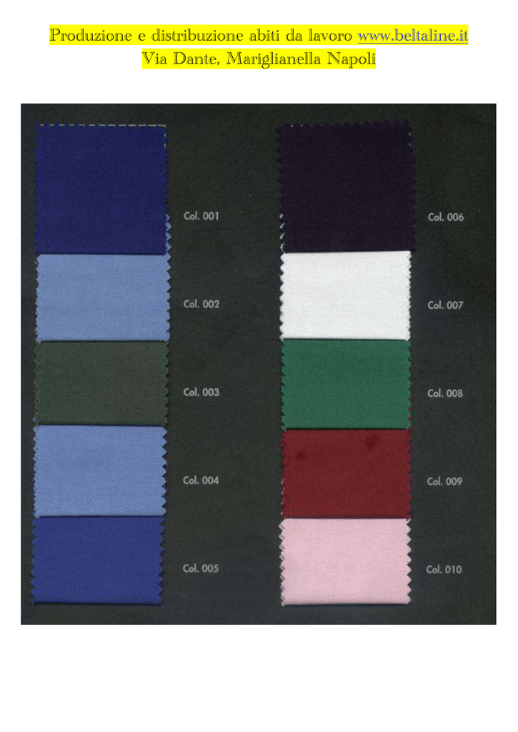 Produzione e distribuzione abiti da lavoro www.beltaline.it Via Dante, Mariglianella Napoli Abiti da lavoro beltà amalia mariglianella Disegno N. 6099 Disegno N. 24579 Disegno N. 25241 Disegno N. 25241 Produzione e distribuzione abiti da lavoro www.beltaline.it Via Dante, Mariglianella Napoli