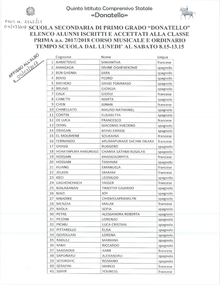 DONATELLO ELENCO ALUNNI ISCRITTI 17.18