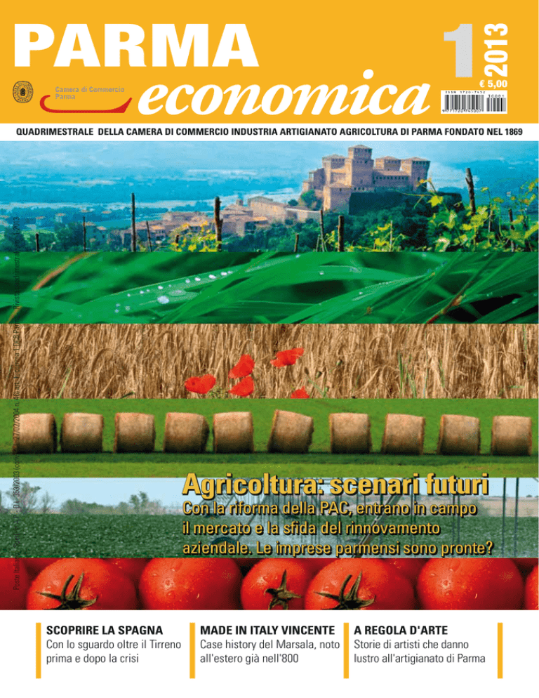 2013 1 economica PARMA € 5,00 Poste Italiane - Sped. in A.P. - D.L. 353/2003 (conv. in L. 27/02/2004 n. 46) art. 1, comma 1 DCB Parma - Rivista quadrimestrale, n° 1-2013 QUADRIMESTRALE della camera di commercio industria artigianato agricoltura di Parma Fondato nel 1869 Agricoltura: scenari futuri Con la riforma della PAC, entrano in campo il mercato e la sfida del rinnovamento aziendale. Le imprese parmensi sono pronte? SCOPRIRE LA SPAGNA Con lo sguardo oltre il Tirreno prima e dopo la crisi MADE IN ITALY VINCENTE Case history del Marsala, noto all'estero già nell'800 A REGOLA D'ARTE Storie di artisti che danno lustro all'artigianato di Parma Borsa Merci Parma La Borsa Merci di Parma è stata istituita dalla Camera di Commercio nel 1967. Prima di spostarsi nell’attuale sede presso Fiere di Parma, dove sono ospitate anche le CUN, ha operato all’interno della stessa Camera di Commercio. È aperta il venerdì, dalle 9 alle 15. Nel corso delle contrattazioni sono rilevati i prezzi di undici tipologie di prodotti agroalimentari: salumi, carni fresche suine, suini, carni grassine, derivati del pomodoro, foraggi, granaglie farine e sottoprodotti, zangolato, siero di latte, formaggio e uve. Numero e qualità dei prodotti rilevati ben rappresentano l’importanza della piazza di Parma legata alla straordinaria vocazione agroalimentare del suo territorio. I listini settimanali dei prezzi rilevati sono pubblicati sul sito Internet www.borsamerci.pr.it. Presidente delle Commissioni Prezzi della Borsa Merci è il Segretario Generale della Camera di Commercio o un suo delegato. L’Ufficio Borsa Merci si trova nella sede della Camera di Commercio di Via Verdi, nel centro storico di Parma. Modalità di ingresso alla nuova Borsa Merci di Parma Da venerdì 15 aprile 2011, in concomitanza con l’istituzione delle Cun ”Tagli di suino” e “Grasso e Strutto”, la Borsa Merci della Camera di Commercio si è trasferita presso Fiere di Parma, all’interno del padiglione 8 del complesso fieristico. Nella nuova localizzazione, di 1.200 mq, sono disponibili: • n. 400 posti auto • oltre 80 box • area ristoro • sportello bancario (di prossima attivazione) Le condizioni di accesso sono le seguenti: Le condizioni di accesso sono le seguenti: • biglietto di ingresso singolo: € 10,00 •• biglietto di ingresso singolo: € 11,00 • abbonamento dal 15/4/2011 al 31/12/2011: •• abbonamento anno 2013: € 450,00 € 300,00 (250,00 + Iva) Sede contrattazioni: Borsa Merci della CCIAA di Parma presso ENTE FIERE - Padiglione n° 8 Via Fortunato Rizzi 67/a 43126 Parma Le Commissioni Uniche Nazionali Il 15 aprile 2011 si sono insediate a Parma la “Commissione Unica Nazionale dei tagli di carne suina” e la “Commissione Unica Nazionale grasso e strutto”. Le Commissioni Uniche Nazionali (CUN) nascono in attuazione del Protocollo d’intesa sottoscritto il 5 dicembre 2007 dal tavolo tecnico della filiera suinicola. Le due CUN operano il venerdì mattina parallelamente alle attività della Borsa Merci; il loro compito è di prendere atto di una panoramica del mercato dei tagli di carne suina e di grasso e strutto, fissandone i relativi prezzi per la settimana successiva. L’attività di segreteria è svolta da Borsa Merci Telematica Italiana, su incarico del Ministero delle Politiche Agricole Alimentari e forestali. http://www.borsamerci.pr.it/ sommario Associata all'Unione Stampa Periodica Italiana (U.S.P.I.) PARMA ECONOMICA N° 1/2013 Chiuso in redazione il giorno 21/06/2013 FOCUS 2 8 16 24 27 Gabriele Canali L’agricoltura parmense verso il 2020 Isabella Casella Giovani, il campo è vostro Roberto Gigante L'Europa ripensa al settore agricolo A cura di Coldiretti Parma Qualità e innovazione, le scommesse dei giovani A cura di Confagricoltura Parma Bisogna favorire il ricambio generazionale economia e territorio 31 35 Rosaria Frisina I primi 30 anni dei Vini dei Colli di Parma Giovanni Ceccarelli, Alberto Grandi Il Marsala, made in Italy di successo economia e società 43 55 Renato Del Chicca La nuova legge sulla disciplina del condominio Giorgio Marbach La ricerca scientifica in Italia: spunti di riflessione mercati esteri 62 72 Francesca Caggiati Cina, un’opportunità per il nostro agroalimentare? A cura di Andrea Della Valentina «Un mercato potenzialmente infinito» 75 Elena Olloqui Palacio Le sorelle d’Europa: Italia e Spagna camminano verso uno stesso orizzonte? cultura e territorio 87 94 Mariagrazia Villa A regola d’arte Giulia Sorgente Poeta nell’arte, poeta nella vita NOTIZIE 104 Elena Olloqui Palacio Direttore responsabile Andrea Zanlari Comitato di redazione Lorenzo Bonazzi Paolo Cavalieri Gianpaolo Faggioli Gianpaolo Gatti Marco Granelli Gian Paolo Lombardo Enzo Malanca Giancarlo Menta Giovanni Mora Coordinamento redazionale Isabella Benecchi Segreteria di redazione Orietta Piazza; Andrea Della Valentina Sec; Chiara Paratico - Sec. Ha collaborato Elena Olloqui Una storia di Parma e della sua economia Redazione presso Camera di Commercio I.A.A. Via Verdi, 2 – Parma Tel. 0521 210249 Fax 0521 282168 e-mail [email protected] Pubblicità Casa Editrice Edicta s.c. a r.l. Via Torrente Termina, 3/B - Parma Tel. 0521 251848 Fax 0521 907857 e-mail [email protected] Abbonamento 2012 euro 12,00 Copie singole euro 5,00 I canoni di abbonamento possono essere versati sul C/C postale n. 00198432 intestato alla C.C.I.A.A. Via Verdi, 2 - 43100 PARMA oppure direttamente presso gli uffici camerali. Spedizione in abbonamento postale Registrazione Tribunale di Parma n. 324 del 21 marzo 1960 Stampa Mattioli 1885 srl - Fidenza (PR) Gli articoli firmati o siglati rispecchiano il pensiero degli autori e non impegnano la Direzione della rivista né la Camera di Commercio. È vietata la riproduzione anche parziale degli articoli e delle illustrazioni senza la citazione della fonte. La redazione si riserva la scelta degli articoli che verranno inviati; i manoscritti non vengono restituiti. Ques