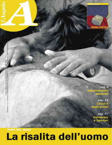 Notiziario della Comunità Parrocchiale di Chiari - N. 4 - Aprile 2006 Poste Italiane S. p. A. - Spedizione in Abbonamento Postale - D. L. 353/2003 (conv. L. 27/02/2004 n. 46) art. 1, comma 2, DCB Brescia In questo numero Notiziario della Comunità Parrocchiale di Chiari N. 4 - Aprile 2006 Anno XVI nuova serie Conto corrente postale n. 12509253 intestato Parrocchia Santi Faustino e Giovita 25032 Chiari (Bs) Registrazione N. 45/91 del 6 settembre 1991 Tribunale di Brescia Edito dalla Parrocchia dei Santi Faustino e Giovita in Chiari via Morcelli 7 Chiari (Bs) sito web: www.parrocchiadichiari.org e-mail: [email protected] 3 6 7 8 9 10 12 Direttore responsabile Claudio Baroni 14 Redazione Mons. Rosario Verzeletti, Luciano Cinquini, Enrica Gobbi, Bruno Mazzotti, Roberto Bedogna, Fulvio Cocciolo, Ida Ambrosiani, Emanuele Baroni, don Alberto Boscaglia 16 Collaboratori Luisa Libretti, Maria Marini, don Felice Rizzini, Primo Gandossi, Rosanna Agostini, don Mino Gritti, don Davide Carsana, Elia Facchetti, Chiara Lorenzi, Alessandro Gropelli, Giuseppe Delfrate Impaginazione Vittorio Bedogna Preparazione copertina Giuseppe Sisinni Tipografia Tipolitografia Clarense di Lussignoli S. & G. Ai collaboratori: ► Il materiale per il numero di maggio si consegna entro il 17 aprile. ► L’incontro di redazione per progettare il numero di giugno si terrà l’1 maggio presso la casa canonica. 2 Consiglio per gli Affari Economici Consiglio Pastorale Parrocchiale FEDE E FAMIGLIA Itinerari differenziati - seconda parte SI FA PRESTO A DIRE ORATORIO Finalmente il Campetto! CITY LIGHTS Le vie della cultura: Chiari è degli artisti CLARENSITÀ DA SAN BERNARDINO 25 COSE SBALORDITIVE Voglio che trionfi la mia misericordia 26 PASTORALE GIOVANILE Centro Giovanile Samber Centro giovanile 2000 TempoScout PACE Un dialogo possibile SPORT Facciamo il punto Il Signore pur essendo Dio, si fece uomo e soffrì per chi soffre, fu prigioniero per il prigioniero, condannato per il colpevole e, sepolto per chi è sepolto, risuscitò dai morti e gridò questa grande parola: Chi è colui che mi condannerà? Si avvicini a me (Is 50, 8). Io, dice, sono Cristo che ho distrutto la morte, che ho vinto il nemico, che ho messo sotto i piedi l’inferno, che ho imbrogliato il forte e ho elevato l’uomo alle sublimità del cielo; io, dice, sono il Cristo. Venite, dunque, o genti tutte, oppresse dai peccati e ricevete il perdono. Sono io, infatti, il vostro perdono, io la Pasqua della redenzione, io l’Agnello immolato per voi, io il vostro lavacro, io la vostra vita, io la vostra risurrezione, io la vostra luce, io la vostra salvezza, io il vostro re. Io vi porto in alto nei cieli. Io vi risusciterò e vi farò vedere il Padre che è nei cieli. Io vi innalzerò con la mia destra. (Dall’Omelia sulla Pasqua di MELITONE DI SARDI, vescovo) In copertina sarà disponibile il 6 maggio DEUS CARITAS EST La prima Enciclica di Benedetto XVI 22 32 de l’Angelo LENTE D’INGRANDIMENTO Nel buio la luce della speranza PRIMA PIETRA 31 Il prossimo numero LA PAROLA DEL PARROCO Pasqua, il terzo giorno Pasqua, il terzo giorno C arissimi Clarensi, vivendo il tempo della Quaresima, mi riesce spontaneo parlare di essa come di un tempo favorevole che ci prepara alla Pasqua e che connota un impegno spirituale considerevole e utile. Riflettiamo sulla Passione di Gesù e rivolgiamo lo sguardo al Crocifisso in una contemplazione di fede autentica e matura. La morte di Gesù in un primo momento vanificò le attese dei discepoli, screditando ai loro occhi tanto la sua figura di profeta quanto il suo prezioso messaggio di vita e di speranza. Morto il Maestro, che si era presentato come l’iniziatore del Regno di Dio, non aveva più senso per loro continuare ad annunciare la sua venuta. Ma “il terzo giorno” i discepoli si ripresero improvvisamente dalla loro delusione e dal loro smarrimento: avevano visto vivo e trasfigurato dalla gloria di Dio, Colui che pochi gior- RAFFAELLO (1483 - 1520) Risurrezione, Museo delle arti, San Paolo ni prima era stato crocifisso. Riuniti di nuovo a motivo di questa esperienza, testimoniarono in ogni luogo con incontenibile forza: “Dio ha risuscitato Gesù” (At 2,32). Da allora i cristiani hanno sempre affermato che la risurrezione di Gesù è il fondamento e il centro della loro fede. Gesù Cristo infatti aveva offerto liberamente la propria vita per riprendersela poi. Infatti aveva detto: “Ho il potere di offrire la vita e il potere di riprenderla di nuovo” (Gv 10,18). Noi cristiani proclamiamo, come scrive San Paolo ai fedeli di Corinto, che “Se Cristo non è risuscitato, allora vana è la nostra predicazione ed è vana anche la nostra fede” (1 Cor. 15,14). Il terzo giorno risuscitò da morte “Gesù è risorto! Gesù vive! Gesù è il Signore!”. È l’annuncio pasquale, un grido di vittoria e di esultanza. Ascoltiamo San Pietro: “Voi avete ucciso Gesù di Nazareth. Ma Dio lo ha risuscitato, sciogliendolo dall’angoscia della morte, perché non era possibile che questa lo tenesse in suo potere”(At 2,24). È Pentecoste e col dono dello Spirito Santo appena ricevuto gli Apostoli e i discepoli annunciano unanimi la Pasqua, il passaggio del Signore. Essi avevano vissuto con Gesù, l’avevano visto crocifisso; poi ecco la sua tomba vuota e le sue apparizioni. Essi ne sono i testimoni e la Chiesa ripeterà la loro testimonianza. La Pasqua è il mistero principale della nostra fede, attorno alla quale si articolano tutte le altre verità di fede. Vi è implicato il Mistero trinitario: il Padre risuscita il Figlio, il Figlio manda lo Spirito Santo sulla Chiesa. Nello Spirito Santo la Chiesa riconosce in Gesù il Figlio di Dio, immagine fedele e autentico interprete del Padre. L’annuncio pasquale implica pure un urgente invito alla conversione. Risuscitando il Figlio da noi ucciso, il Padre ripara al nostro incredibile errore e peccato e ci chiama al pentimento: “Pentitevi e ciascuno di voi si faccia battezza