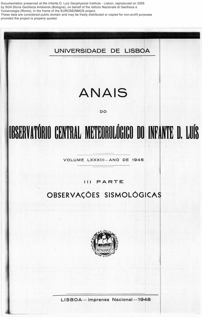 Documentation preserved at the lnfante D. Luiz Geophysical Institute
