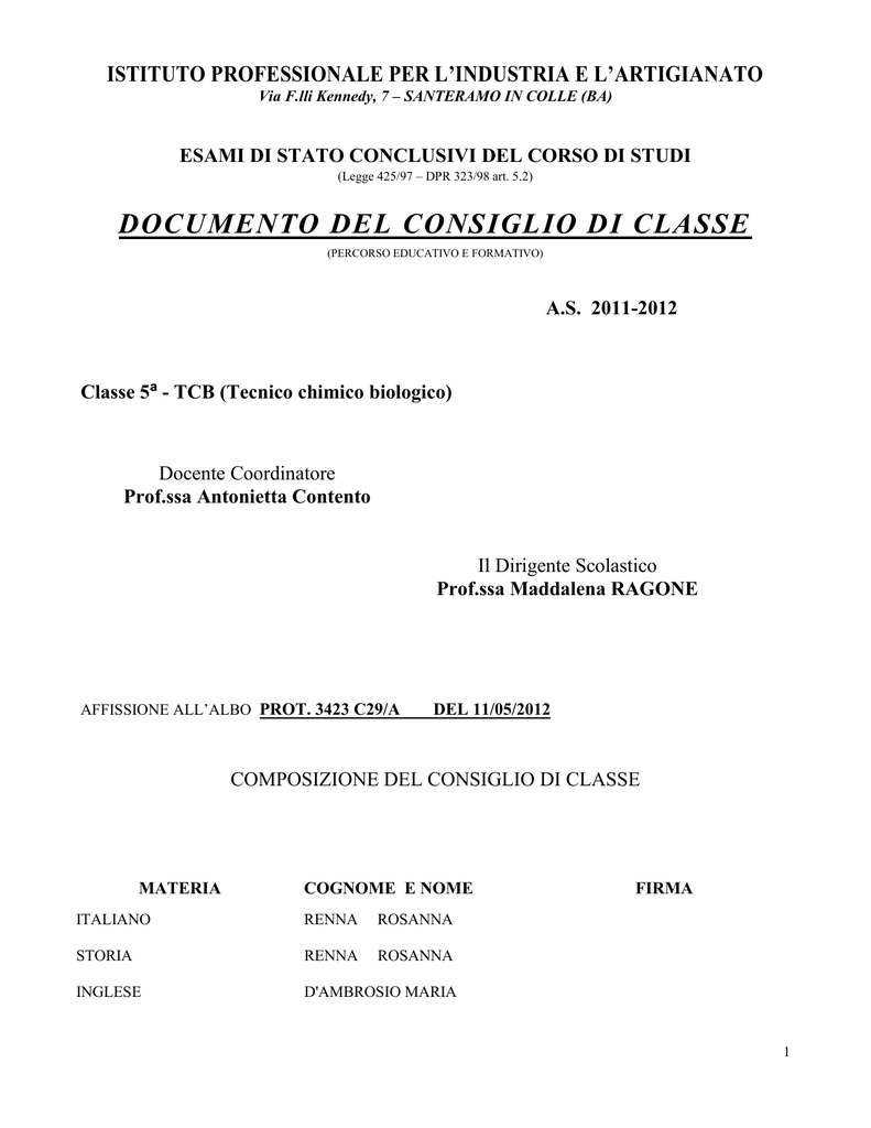 (Legge 425/97 – DPR 323/98 art. 5.2)