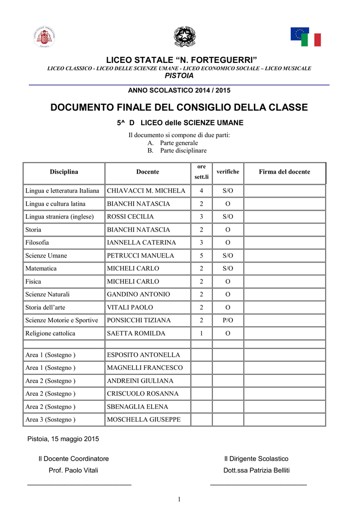 documento finale del consiglio della classe