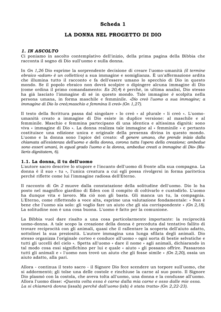 Scheda 1 LA DONNA NEL PROGETTO DI DIO