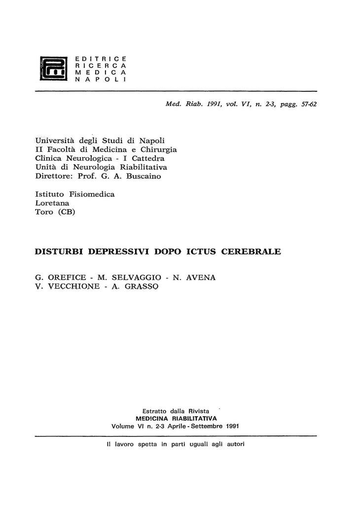 Disturbi depressivi dopo ictus cerebrale