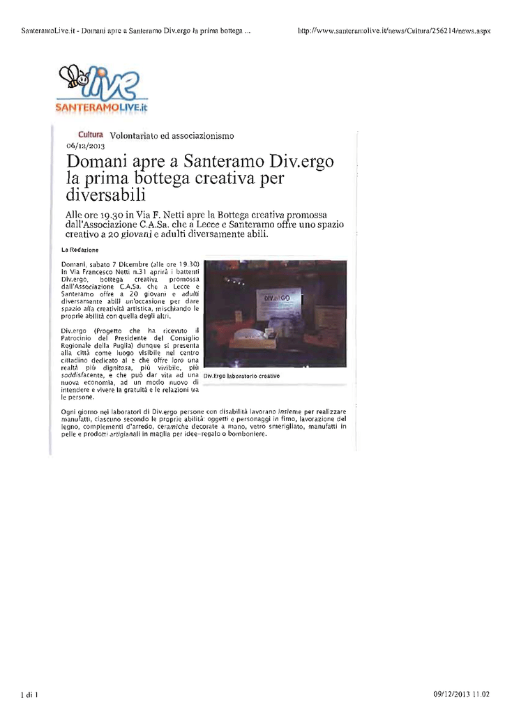 Domani apre a Santeramo Div.ergo