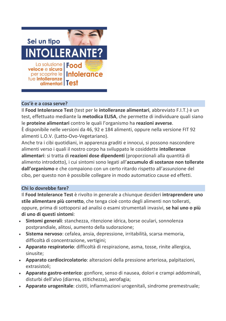 Cos`è e a cosa serve? Il Food Intolerance Test (test per le