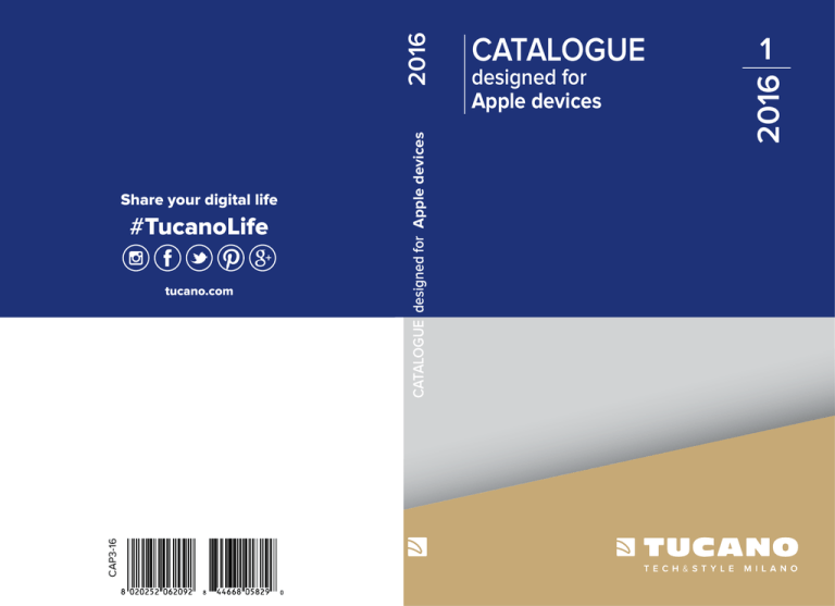 CAP3-16 tucano.com designed for Apple devices 1 2016 2016 #TucanoLife CATALOGUE designed for Apple devices Share your digital life CATALOGUE QUALITY INNOVATION CREATIVITY COLOUR ITALIAN DESIGN Our values I nostri valori BAGS INDEX 2016 INDEX 01 SECOND SKIN CASES COVERS & CASES for iPad for iPhone Dark . . . . . . . . . . . . . . . . . . . . . . . . . . . . . 6 Agio . . . . . . . . . . . . . . . . . . . . . . . . . . . . . 8 Profilo Premium (backpack) . . . . . . . . 14 Livello Up (backpack). . . . . . . . . . . . . 16 Tech Yo Up (backpack). . . . . . . . . . . . . 18 Luna (backpack) . . . . . . . . . . . . . . . . . 20 Fina Premium (backpack) . . . . . . . . . 22 Work_Out II . . . . . . . . . . . . . . . . . . . . . 24 Lampo. . . . . . . . . . . . . . . . . . . . . . . . . . 26 Shine. . . . . . . . . . . . . . . . . . . . . . . . . . . 28 T for Travel A Anti-Radiation System Elements . . . . . . . . . . . . . . . . . . . . . . . 32 Nido . . . . . . . . . . . . . . . . . . . . . . . . . . . 36 Club . . . . . . . . . . . . . . . . . . . . . . . . . . . Giro. . . . . . . . . . . . . . . . . . . . . . . . . . . . Angolo. . . . . . . . . . . . . . . . . . . . . . . . . Angolo Limited Edition . . . . . . . . . . . Filo . . . . . . . . . . . . . . . . . . . . . . . . . . . . 40 42 44 46 50 Brio Limited Edition . . . . . . . . . . . . . . 54 Filo . . . . . . . . . . . . . . . . . . . . . . . . . . . . . 57 Libro. . . . . . . . . . . . . . . . . . . . . . . . . . . 58 Al-Go. . . . . . . . . . . . . . . . . . . . . . . . . . . 60 Tosto . . . . . . . . . . . . . . . . . . . . . . . . . . . 61 Elektro Flex. . . . . . . . . . . . . . . . . . . . . 62 Sottile . . . . . . . . . . . . . . . . . . . . . . . . . 63 Leggero ZigZag . . . . . . . . . . . . . . . . . 64 Leggero . . . . . . . . . . . . . . . . . . . . . . . . 65 Elektro . . . . . . . . . . . . . . . . . . . . . . . . . 66 A A FOR APPLE BAGS for MacBook 12” MacBook Pro 13” Retina iPad Air / iPad Pro Dark HARD SHELL BAG •Back side molded by high density thermoformed EVA •Made of nylon and waxed fabric •Elastic corner bands for hooking up the MacBook’s display to the bag •Anti-Slip System prevents slippage of the MacBook •Two pockets that perfectly fit iPad Air and iPad Pro •Removable and adjustable shoulder strap DARK cod. BDA-MB1213 •Lato posteriore semirigido con costruzione termoformata resistente agli urti •Realizzata in nylon e tessuto cerato •Fascette elastiche per agganciare gli angoli dello schermo alla borsa •Anti-Slip System che protegge il MacBook da cadute accidentali •Due tasche dedicate per iPad Air e iPad Pro •Tracolla imbottita, regolabile e rimovibile BAGS 7 Agio SLIM BAG for MacBook Pro 13” Retina + iPad • Made of durable glossy nylon • Base coated in elegant PU • Internal compartment with an Anti-Shock System for laptop protection • Dedicated pocket for a tablet or iPad • Adjustable and removable shoulder strap • Front organisational pocket • Backpack convertible AGIO cod. BAGIO13 B GT • Realizzata in resistente nylon lucido • Base rivestita in elegante PU • Vano interno con Anti-Shock System per la protezione del portatile • Tasca frontale organizzata • Tasca dedicata a tablet o iPad • Tracolla regolabile e rimovibile • Trasformabile in zaino BAGS 9 for MacBook Pro 15” Retina + iPad Agio COMPACT BAG •Made of durable glossy nylon •Base coated in elegant PU •Internal compartment with an Anti-Shock System for laptop protection •Dedicated pocket for a tablet or iPad •Adjustable and removable shoulder strap •Front organisational pocket •Realizzata in resistente nylon lucido •Base rivestita in elegante PU •Vano interno con Anti-Shock System per la protezione del portatile •Tasca frontale organizzata •Tasca dedicata a tablet o iPad •Tracolla regolabile e rimovibile AGIO cod. BAGIO15 B GT BAGS 11 Agio Shopper TOTE BAG for MacBook Pro 15” Retina + iPad •Made of durable glossy nylon •Base coated in elegant PU •Internal compartment with extra padding for laptop protection •Dedicated pocket for a tablet or iPad •Front organisational pocket •Realizzata in resistente nylon lucido •Base rivestita in elegante PU •Vano interno con imbottitura extra per la protezione del portatile •Tasca dedicata a tablet o iPad •Tasca frontale organizzata AGIO cod. BAGIOSH B BAGS 13 Largo Profilo Premium II BUSINESS BAG for MacBook Pro 15” Retina + iPad Alto Profilo Premium II BACKPACK for MacBook Pro 15” Retina + iPad •Made in technical fabric resistant to wear and tear •Real leather handles •Internal compartment with Anti-Shock System •Dedicated pocket for a tablet or iPad •Front organisational pocket •Can be converted into a backpack with hidden straps •Adjustable and removable shoulder strap •Made in technical fabric resistant to wear and tear •Real leather handle •Internal compartment with extra padding •Dedicated pocket for a tablet or iPad •Front organisational pocket •Strap to attach it to a trolley •Two front pockets with zip closure •Realizzata in tessuto tecnico resistente a strappo ed usura •Maniglie in vera pelle •Vano interno con Anti-Shock System •Tasca dedicata a tablet o iPad •Convertibile in zaino tramite spallacci a scomparsa •Tasca frontale organizzata •Fascia per l’aggancio al trolley •Tracolla regolabile e rimovibile •Realizzato in tessuto tecnico resistente a strappo ed usura •Maniglia in vera pelle •Vano interno con imbottitura extra •Tasca dedicata a tablet o iPad •Tasca frontale organizzata •Fascia per l’aggancio al trolley •Due tasche sul fronte con chiusura a zip 14 cod. BLAPPR2 B cod. BAPPR2 B BAGS 15 Livello Up BACKPACK for MacBook Pro 15” Retina + iPad •Made in resistant technical material •Main padded compartment to protect the laptop •Tablet pocket •Secondary compartment with organizer •Padded and ergonomic back panel and shoulder straps •Rea