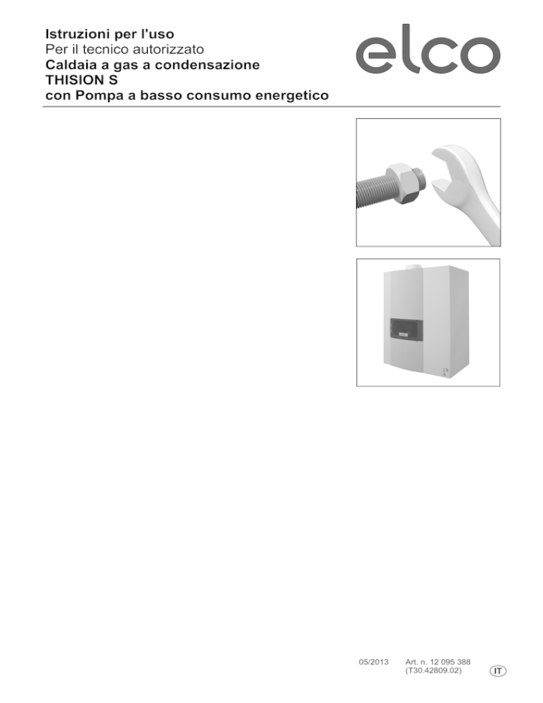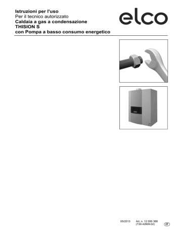 Istruzioni per l'uso Per il tecnico autorizzato Caldaia a gas a condensazione THISION S con Pompa a basso consumo energetico 05/2013 Art. n. 12 095 388 (T30.42809.02) Indice Indice Descrizione del prodotto Idraulica Montaggio Installazione Fondamenti Messa in servizio Manutenzione Manutenzione e servizio Anomalie/Cause/Rimedi …………………….............................................................................. 2 In generale......................................................................................... 3 Qualità dell'acqua di riscaldamento.................................................... 4 Descrizione del funzionamento.......................................................... 5 Dotazione THISION S........................................................................ 5 Dati tecnici.......................................................................................... 6 Dati tecnici – solo per la Svizzera....................................................... 8 Dimensioni.......................................................................................... 9 Disegno quotato THISION S............................................................... 9 Pannello comandi............................................................................... 10 Display................................................................................................ 10 Pompe di circolazione........................................................................ 11 Separatore idraulico........................................................................... 13 Scambiatore di calore a piastre.......................................................... 14 Collocazione, fissaggio, raccordi........................................................ 15 Raccordo gas combusti e aria fresca................................................. 16 Condotta aria fresca/gas combusti..................................................... 16 Varianti di esecuzione........................................................................ 16 Condotta aria fresca/gas combusti..................................................... 17 Dimensionamento............................................................................... 17 Impianto di evacuazione D 80 PPS, tiraggio naturale........................ 19 Impianto di evacuazione dei fumi D 80/125 PPS/alluminio bianco Tiraggio forzato.................................................................................. 20 Collegamenti elettrici.......................................................................... 24 Funzioni principali unità di comando.................................................. 25 Lavori preliminari................................................................................ 26 Quantità gas combusti e regolazione................................................. 27 Quantità gas combusti e regolazione potenza minima (non per Belgio).................................................................................. 28 Quantità gas combusti e regolazione potenza massima (non per Belgio).................................................................................. 29 THISION S 9.1/13.1 Conversione da gas naturale G20 a gas naturale G25 (non per Belgio)...................... 30 THISION S 17.1/25.1 Conversione gas naturale G25 o gas liquido (non per Belgio)................................ 31 THISION S 35.1/+ 50.1 Conversione gas naturale G25 o gas liquido (non per Belgio)................................ 32 THISION S 9.1/13.1 Conversione da gas naturale G20 a gas naturale G25 (non per Belgio)...................... 33 THISION S 17.1/25.1 Conversione da gas naturale G20 a gas naturale G25 (non per Belgio)...................... 34 THISION S 25.1 Conversione gas naturale G25 o gas liquido (non per Belgio)................................ 35 THISION S 35.1/+ 50.1 Conversione gas naturale G25 o gas liquido (non per Belgio)................................ 36 Controlli e verifiche............................................................................. 37 ............................................................................................................ 39 Resistenze delle sonde………………………….................................. 41 Visualizzazione guasti e soluzioni...................................................... 42 2 In generale Indicazioni generali La collocazione, l'installazione, l'allacciamento elettrico e la prima messa in servizio devono essere effettuate da uno specialista. Quest'ultimo è responsabile dell'esecuzione a regola d'arte. Indicazioni per l'utente finale La sicurezza e la funzionalità della THISION sono garantite se l'impianto è sottoposto a manutenzione periodica da parte di uno specialista del riscaldamento. A tale scopo si raccomanda di stipulare un contratto di manutenzione. Prima di installare la caldaia THISION va richiesta l'autorizzazione dell'azienda del gas e dello spazzacamino distrettuale. Condizioni di garanzia Le nostre prestazioni di garanzia decadono per danni in seguito a: uso o impiego improprio o non conforme montaggio o messa in servizio errati da parte dell'acquirente o di terzi integrazione di parti di produttori terzi utilizzo dell'impianto con pressioni eccessive o al di fuori dei valori indicati di fabbrica impiego di combustibili non adatti mancata osservanza delle indicazioni riportate nelle istruzioni per l'uso e sull'adesivo applicato sull'apparecchio. Disposizioni Per garantire un funzionamento sicuro, ecocompatibile e a basso consumo di energia, osservare le seguenti norme tedesche: DIN 1988 Norme tecniche per l'installazione e l'esercizio di impianti di acqua potabile DIN V 18160-1 Condotte per gas combusti, progettazione e realizzazione TRGI (DVGW G600) Regole tecniche per installazioni a gas ATV-DVWK-A251 Immissione dei condensati di impianti di combustione nelle canalizzazioni pubbliche Landesbauverordnungen TRF Regole tecniche per gas liquido D