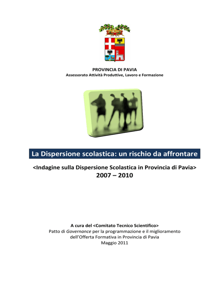 PROVINCIA DI PAVIA Assessorato Attività Produttive, Lavoro e Formazione La Dispersione scolastica: un rischio da affrontare <Indagine sulla Dispersione Scolastica in Provincia di Pavia> 2007 – 2010 A cura del <Comitato Tecnico Scientifico> Patto di Governance per la programmazione e il miglioramento dell’Offerta Formativa in Provincia di Pavia Maggio 2011 La Dispersione scolastica: un rischio da affrontare <Indagine sulla Dispersione Scolastica in Provincia di Pavia> 2007 – 2010 A cura dell’Assessorato Attività Produttive, Lavoro e Formazione della Provincia di Pavia e del Comitato Tecnico Scientifico previsto all’art. 7 del “Patto di Governance per la programmazione e il miglioramento dell’offerta formativa in Provincia di Pavia”. Comitato Tecnico Scientifico: Piera Bianco – APOLF PAVIA Massimo Ferrari – IIS FARAVELLI STRADELLA Mara Aschei – LICEO FOSCOLO PAVIA Roberto Gavana – IPSIA CREMONA PAVIA Giuseppe Belli – ITIS CARDANO PAVIA Alberto Henin – IIS POLLINI MORTARA Tonino Adamo – FONDAZIONE CLERICI PAVIA Carla Gorin – DELEGATO DALLA PROVINCIA Mauro Casella – IIS VOLTA PAVIA Anna Abelli ‐ ODPF SANTACHIARA Maria Grazia Crotti ‐ DELEGATO DALLA PROVINCIA Coordinamento organizzativo‐metodologico del Comitato Tecnico Scientifico Roberto Bertacchini Si ringraziano tutti i dirigenti e il personale delle istituzioni scolastiche e degli organismi di Formazione Professionale, la direzione del Settore Attività Produttive, Lavoro, Formazione e Sviluppo, i funzionari della Provincia di Pavia, dell’Ufficio Scolastico Provinciale e tutti coloro che hanno corrisposto all’azione di indagine e alla riuscita dei <focus group> sulla dispersione scolastica per la disponibilità manifestata e per la collaborazione prestata. 2 Perché un rapporto d’indagine sulla Dispersione Scolastica Se da un lato, il recente avvio dell’Anagrafe degli studenti risulta essere uno strumento di presidio e di controllo fondamentale sui dati di tutti gli studenti, costituendo un importante punto di riferimento univoco per tutti i soggetti istituzionali territorialmente interessati e per tutte le Istituzioni scolastiche e formative della Provincia di Pavia, dall’altro si devono sempre di più porre in atto azioni coordinate verso il problema del disagio e della dispersione scolastica Dopo la presentazione del Rapporto di Monitoraggio 2010, il Comitato Tecnico Scientifico del patto di Governance ha voluto completare la prima fase dell’indagine sulla dispersione scolastica in Provincia di Pavia (Settembre 2010), inserendo anche gli ultimi dati relativi all’anno scolastico 2009‐2010 e presentare un report che prenda in visione l’intero triennio 2007‐2010. Si è inteso così intraprendere un percorso nuovo, maggiormente attento alla qualità dei processi educativo‐formativi seguendo il filo rosso della dispersione scolastica nella Provincia di Pavia, per cercare di capire quali sono le eventuali azioni correttive e di supporto a tutti coloro che operano nel sistema scolastico‐formativo o che hanno il potere di modificarlo, tanto o poco che sia, affinché le decisioni convergano il più possibile su soluzioni efficaci ed efficienti tese a valorizzare al meglio l’impegno e la consapevole partecipazione dei giovani nella scuola e nella formazione professionale. 3 INDICE 1. Rapporto d’indagine 2007‐ 2010: la Dispersione Scolastica in Provincia di Pavia pag. 5 1.1. PREMESSA: AFFRONTARE SERIAMENTE IL RISCHIO DISPERSIONE 1.2. PRESENTAZIONE DELLA PRIMA INDAGINE PROVINCIALE SULLA DISPERSIONE SCOLASTICA E ARCHITETTURA DEL QUESTIONARIO 1.3. PRESENTAZIONE DEI DATI RACCOLTI 1.4. ELABORAZIONI STATISTICHE COMPLESSIVE PER TUTTI GLI ATTRIBUTI STATISTICAMENTE SIGNIFICATIVI 1.5. FORMAZIONE PROFESSIONALE GLI ISCRITTI: LE QUANTITA’ PER ZONA E GLI INDIRIZZI ATTIVATI 1.6. FORMAZIONE PROFESSIONALE 2007 ‐ 2010: elaborazione e presentazione dei dati raccolti nel corso dell’indagine 2. pag. 47 pag. 48 Le schede “buone prassi”: attività realizzate dalle scuole e dai CFP contro la Dispersione Scolastica 2.1. LE SCHEDE “BUONE PRASSI”: attività realizzate dalle scuole e dai CFP contro la Dispersione Scolastica 3. Dalla <fotografia dell’esistente> alla proposta di <Linee Guida> 3.1. FOCUS GROUP SULLA DISPERSIONE: LA FOTOGRAFIA DELL’ESISTENTE 3.2. IL QUADRO D’AZIONE STRATEGICO: <LE LINEE GUIDA> 4. Appendice: ulteriori elaborazioni statistiche Fonti bibliografiche e sitografiche 4 pag. 6 pag. 10 pag. 11 pag. 24 pag. 37 pag. 34 pag. 65 pag. 66 pag. 69 pag. 73 pag. 95 5 1. Rapporto d’indagine 2007‐ 2010: la Dispersione Scolastica in Provincia di Pavia 1.1. PREMESSA: AFFRONTARE SERIAMENTE IL RISCHIO DISPERSIONE La dispersione è un fenomeno complesso è può essere definita come insieme di fattori che modificano il regolare svolgimento del percorso scolastico di uno studente. In ambito scolastico non si identifica semplicemente con l’abbandono, ma riunisce un insieme di cause (irregolarità nelle frequenze, ritardi, non ammissione all’anno successivo, ripetenze, interruzioni) che possono sfociare nell’uscita anticipata dei ragazzi dal sistema scolastico. La dispersione incrocia più mondi formativi, dalla scuola alla formazione professionale fino al lavoro e una raccolta di dati sulla dispersione che sia da sfondo per riflessioni e scelte concrete richiede pertanto un’integrazione delle varie fonti amministrative e una loro utilizzazione sistematica ed integrata. E’ nella scuola superiore che il fenomeno <dispersione> esplode: tra la prima e la seconda si perdono parecchi ragazzi; certo alcuni vanno alle scuole private o alla formazione professionale ma, nell’insieme, il numero di coloro che dopo qualche anno di frequenza si perde, resta molto alto. Il disagio scolastico è sempre frutto di una combinazione di cause. Bisogna riconoscerle per meglio studiare e predisporre interventi di contrasto. • la famiglia: è purtroppo scontato che le condizioni familia