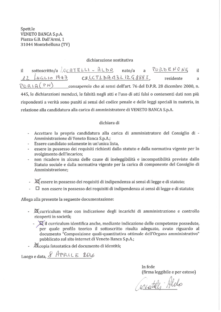 Documentazione candidati