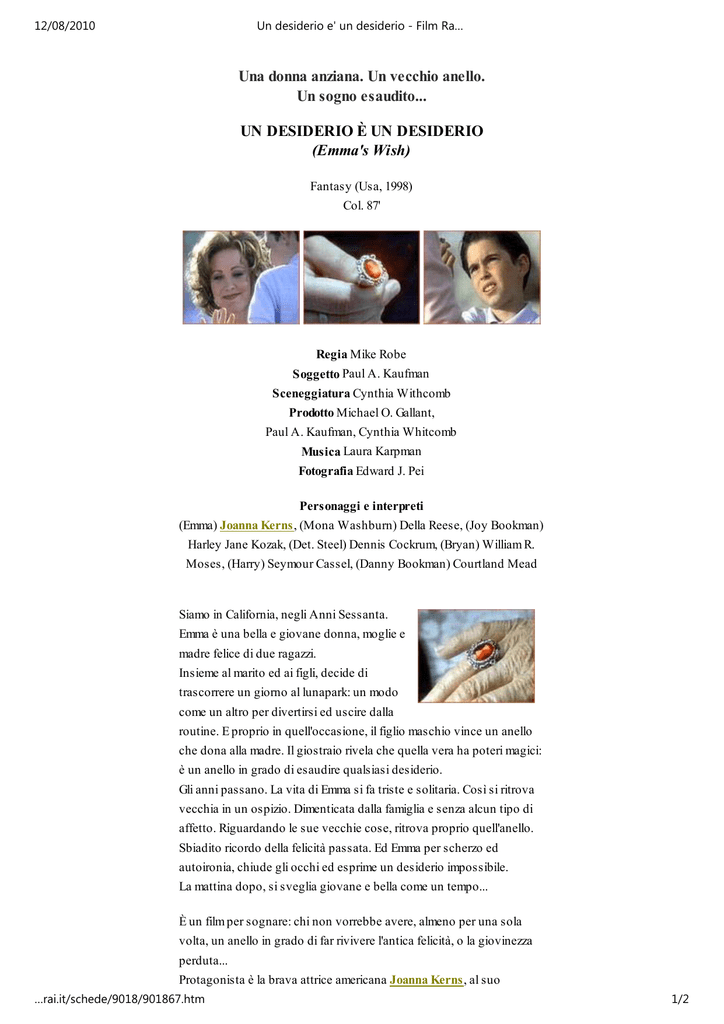 Un desiderio e` un desiderio - Film Raiuno Raidue