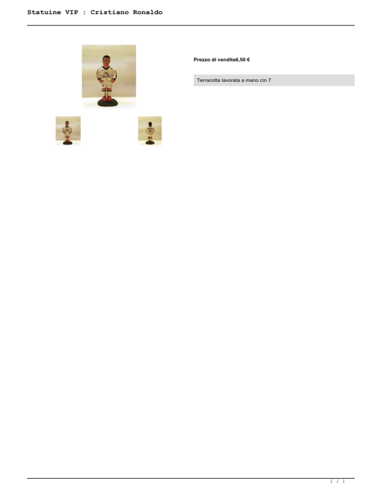 Statuine VIP : Cristiano Ronaldo Prezzo di vendita6,50 € Terracotta lavorata a mano cm 7 1 / 1 Powered by TCPDF (www.tcpdf.org)