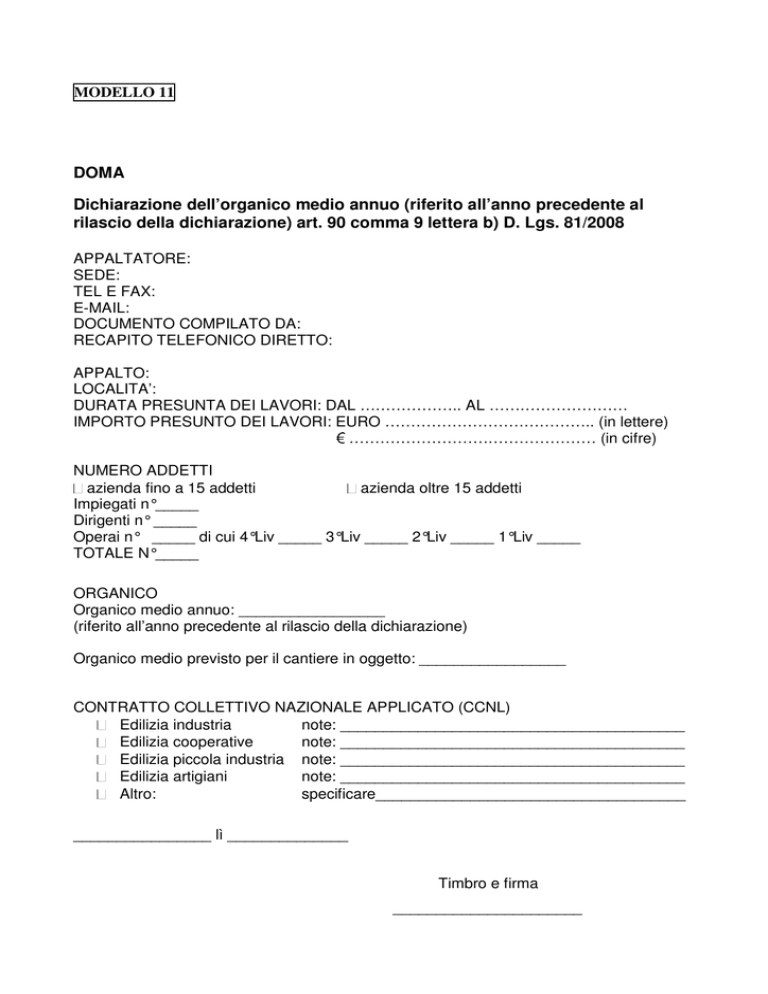 DOMA Dichiarazione dell organico medio annuo (riferito all anno