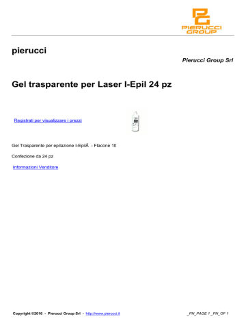 pierucci Pierucci Group Srl Gel trasparente per Laser I-Epil 24 pz Registrati per visualizzare i prezzi Gel Trasparente per epilazione I-Epil - Flacone 1lt Confezione da 24 pz Informazioni Venditore Copyright ©2016 - Pierucci Group Srl - http://www.pierucci.it _PN_PAGE 1 _PN_OF 1