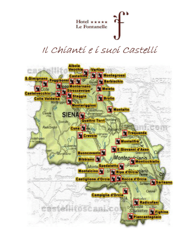 Il Chianti e i suoi Castelli -0- ***** La Toscana è nota per l'arte, la natura, il buon vino, l'olio d'oliva, ma anche per la sua storia affascinante e misteriosa, di cui restano testimoni numerosi castelli e abbazie, ma anche piccole pievi di paese e di campagna. Il territorio del Chianti si estende tra le province di Firenze e Siena, a ovest della val di Pesa e della val d'Elsa. Caratteristico di questa parte di Toscana è l'affascinante susseguirsi di borghi, vigneti e colline, in una suggestiva atmosfera medievale. Qui sorgono i centri storici della produzione del più famoso tra i vini italiani e ogni strada conduce a una cantina, un castello e una fattoria il cui nome figura su un'etichetta di vino insieme al celebre marchio del Gallo Nero che indica il Chianti d'eccellenza. ***** -1- Il CASTELLO DI BROLIO Il castello di Brolio è di origine longobarda, sebbene dell'antico fortilizio non rimanga oggi alcuna traccia ad eccezione della locazione. Il suo ruolo nella storia iniziò ad essere rilevante a partire dal XII secolo, quando vi si insediò la potente famiglia dei Ricasoli da Cacchiano, ai quali ancora oggi appartiene. La sua posizione strategicamente fondamentale per il controllo della zona del Chianti ai margini dell'influenza fiorentina, quindi ai confini con il territorio senese, pose il Castello al centro delle molte guerre di frontiera conseguenti a partire dal '300 fino alla metà del XVI secolo. Siamo infatti nel cuore del territorio fiorentino della Lega del Chianti - formata dai terzieri di Radda, Castellina e Gaiole - da sempre ricca di presenze feudali e contesa aspramente fra le due grandi potenze sopracitate. Tutti i castelli della zona, sia da parte fiorentina che senese, furono sempre fortemente potenziati, tanto che si crearono due vere e proprie linee difensive contrapposte. -2- Il castello fu quasi sempre in mano a Firenze, ad eccezione di una temporanea occupazione senese a seguito della seconda invasione aragonese del Chianti nel 1472. A seguito di questo evento, a partire dal 1484, dopo che il castello era tornato fiorentino, iniziò una profonda opera di ristrutturazione e potenziamento della roccaforte tanto che possiamo considerare Brolio una delle prime fortezze bastionate italiane. I suoi bastioni, in pietra e ancora oggi in perfetto stato, hanno una pianta a forma di pentagono irregolare sebbene con una struttura primitiva rispetto allo sviluppo che di lì a poco avrebbe avuto questa nuova forma di fortificazione. Non è certo, ma sembra che l'architetto Il Palazzo Baronale con la cinta responsabile dell'opera sia stato Giuliano da Sangallo, che muraria interna. affinerà in seguito la sua arte fortificatoria al servizio dei Medici. Detta cinta racchiude i resti dell'originale castello medievale, soprattutto il cassero e la chiesa romanica, oltre che una grandiosa villa neogotica in mattoni rossi fatta costruire al posto dei preesistenti locali dal barone Bettino Ricasoli, 1809-1880 famoso uomo politico detto il Barone di Ferro, nel secolo scorso. Il castello sorge al centro di sterminati vigneti, dai quali sin dal 1141 i Ricasoli traggono il loro famoso vino, posto ad invecchiare nelle cantine all'interno delle possenti mura. CASTELLO DI MELETO Le origini di Meleto risalgono al XI secolo come possedimento dei monaci vallombrosani della vicina Abbazia di Coltibuono. Il primo feudatario del castello risulta essere stato un certo Guardellotto. Quest’ ultimo fu spogliato di tutti i suoi beni a causa di contrasti sorti con l'imperatore Federico I Barbarossa il quale affidò Meleto alla locale famiglia dei Firidolfi, già insediati in altri castelli della zona. Da qui ebbe origine il ramo dei Firidolfi detto appunto 'da Meleto' mentre un'altra divisione della famiglia dette vita a quello dei Ricasoli Fibindacci che legheranno fortemente il loro nome alla storia di questi luoghi del Chianti. -3- La posizione strategica, su un colle a diretto controllo della sottostante strada di collegamento fra il Valdarno superiore e il Chianti, oltre che la vicinanza con il confine fra i territori controllati dai senesi e quelli fiorentini, dei quali il castello era l'ultimo baluardo, resero Meleto una delle fortificazioni principali del Terziere della Lega del Chianti capitanato da Gaiole. Per questi motivi il castello fu per secoli teatro di guerre senza però subire gravi distruzioni. L'impostazione essenzialmente 'militaresca' dell'insediamento può essere riscontrata ancora oggi nonostante le trasformazioni subite nel XVIII secolo: la forma a quadrilatero irregolare, quasi un trapezio, con la presenza al centro della torre del cassero, sebbene notevolmente abbassata, ci mostrano un classico esempio di castello-recinto. Nel 1478 il castello fu occupato dall'esercito Aragonese alleato con Siena ma due anni dopo fu prontamente riconquistato dai fiorentini che eseguirono notevoli lavori di rafforzamento delle strutture. Praticamente le addizioni del 1480 sono ancora intatte e consistono in due possenti torrioni cilindrici bastionati dotati di apparato difensivo a sporgere ai due angoli meridionali (i più esposti); di ballatoi in mattoni, anch'essi con beccatelli e archetti per la difesa piombante, ai due angoli settentrionali aggettanti sul margine del colle, già naturalmente meglio difesa; la parziale bastionatura delle cortine murarie verso l'unica strada di accesso e l'inserimento di feritoie e troniere, in parte scomparse, lungo il perimetro delle mura. Grazie a tutto questo nel 1529 Meleto resistette vittoriosamente all'assedio delle truppe imperiali. Mai distrutto attraverso dispute, assedi e battaglie il castello fu trasformato in villa nel 1700 e le sue difese in parte smantellate. I suoi interni, hanno ancora oggi l'aspetto di questo periodo con sale decorate e affrescate e un particolare teatrino del 1742 provvisto tuttora delle sue sette scenografie originali. Meleto rimase proprietà della famiglia Ricasoli fino ad una trentina di anni fa, oggi è sede
