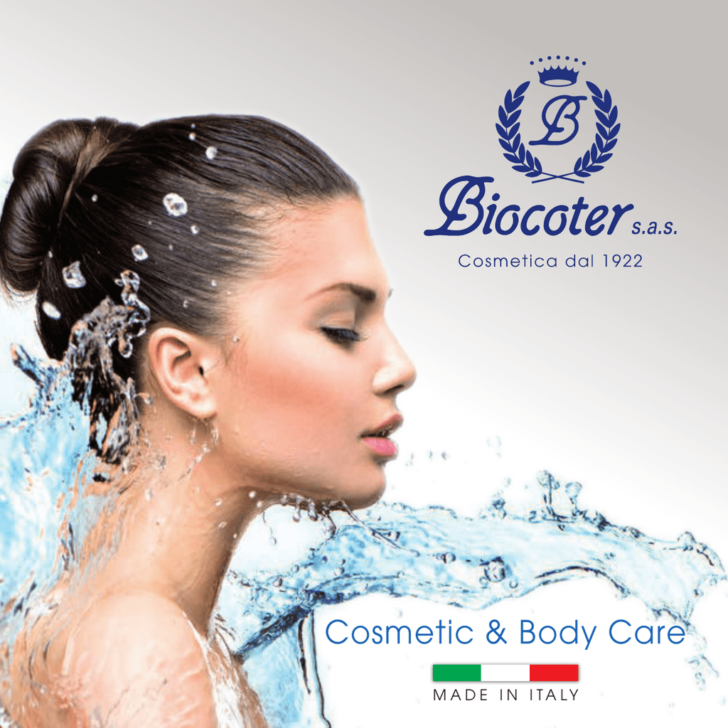 Cosmetic & Body Care M A D E I N I TA LY Biocoter è un’azienda di produzione di prodotti cosmetici presente sul mercato da quasi 100 anni. È specializzata nella produzione e nella vendita di prodotti cosmetici, articoli da bagno effervescenti e da regalo per profumeria, linee per l’igiene e la cura della persona, oltre ad una linea completa per la depilazione. È possibile acquistare tutti gli articoli presso il punto vendita aziendale aperto al pubblico. Fondata nel 1922 a Milano da un chimico tedesco, fu ritirata dall’attuale proprietà nel 1972. Efficienza, precisione e qualità sono i punti cardinali di un’azienda vitale, che muove passi decisivi verso il futuro. Il suo obiettivo è quello di garantire al cliente qualità e servizio ottimali. Area complessiva 20000 mq, area coperta 3000 mq. L’attuale stabile comprende: uffici, laboratorio e controllo qualità, impianti di lavorazione, impianti di riempimento, impianti di confezionamento, area magazzino. BAGNO DOCCIA NATURALE ART. 99001 FA ART. 99001 AA ART. 99001 HY ART. 99001 OB BAGNO DOCCIA NATURALE 500 ML. Prof. FIORI D’ACQUA CONF. 6 PZ. BAGNO DOCCIA NATURALE 500 ML. Prof. AMBRA E ARGAN CONF. 6 PZ. BAGNO DOCCIA NATURALE 500 ML. Prof. HYDRASPA CONF. 6 PZ. BAGNO DOCCIA NATURALE 500 ML. Prof. OCEAN BREEZE CONF. 6 PZ. ART. 99002 FA ART. 99002 AA ART. 99002 HY ART. 99002 OB BAGNO DOCCIA NATURALE 1000 ML. Prof. FIORI D’ACQUA CONF. 6 PZ. BAGNO DOCCIA NATURALE 1000 ML. Prof. AMBRA E ARGAN CONF. 6 PZ. BAGNO DOCCIA NATURALE 1000 ML. Prof. HYDRASPA CONF. 6 PZ. BAGNO DOCCIA NATURALE 1000 ML. Prof. OCEAN BREEZE CONF. 6 PZ. ART. 99004 FA ART. 99004 AA ART. 99004 HY LATTE CORPO 300 ML. Prof. FIORI D’ACQUA CONF. 6 PZ. LATTE CORPO 300 ML. Prof. AMBRA E ARGAN CONF. 6 PZ. LATTE CORPO 300 ML. Prof. HYDRASPA CONF. 6 PZ. LATTE CORPO SHAMPOO NEUTRO ART. 99003 VF SHAMPOO NEUTRO NATURALE 500 ML. CON VITAMINA F CONF. 6 PZ. DISPONIBILI ANCHE: CONFEZIONE ASSORTITA TANICA 5000 ML. ART. 99001 ASS - BAGNO DOCCIA 500 ML. - (2 X FRAGRANZA) - CONF. 8 PZ. ART. 99002 ASS - BAGNO DOCCIA 1000 ML. - (2 X FRAGRANZA) - CONF. 8 PZ. ART. 99024 FA - BAGNO DOCCIA - FIORI D’ACQUA - CONF. 1 PZ. ART. 99024 AA - BAGNO DOCCIA - AMBRA E ARGAN - CONF. 1 PZ. ART. 99024 HY - BAGNO DOCCIA - HYDRASPA - CONF. 1 PZ. ART. 99024 OB - BAGNO DOCCIA - OCEAN BREEZE - CONF. 1 PZ. ART. 99004 ASS - LATTE CORPO 300 ML. - (2 X FRAGRANZA) - CONF. 6 PZ. ART. 99025 VF - SHAMPOO NEUTRO - CONF. 1 PZ. Linea Bagno Charme PRODOTTI DERMATOLOGICAMENTE TESTATI Una linea completa per la detergenza e la cura del corpo. Una serie di prodotti dermatologicamente testati che detergono, ammorbidiscono, rilassano e profumano la pelle. Le profumazioni sono state accuratamente selezionate e scelte tra le più delicate e naturali. BAGNO DOCCIA NATURALE. Questo Bagno Doccia Naturale è stato formulato sulla base di detergenti di origine naturale derivanti dalla palma di cocco i quali producono una schiuma morbida e profumata capace di detergere la pelle delicatamente senza alterarne il ph fisiologico. L’aggiunta di Vitamina F idrata la pelle e le conferisce elasticità. PRODOTTO DI ORIGINE NATURALE AL 96% - SENZA SLES, LES E PARABENI LATTE CORPO. Questo Latte Corpo è stato formulato per tutti i tipi di pelle e svolge un’efficace azione purificante e tonificante, lasciando la pelle morbida e luminosa. Si assorbe rapidamente senza lasciare untuosità. SHAMPOO NATURALE. Prodotto di semplice formulazione basata su delicati tensioattivi di origine naturale derivati dalla palma di cocco. L’aggiunta di Vitamina F fortifica la struttura del capello, ne favorisce la ricostruzione e lo rende morbido e lucido. Questo shampoo è adatto per tutti i tipi di capelli e svolge un’azione detergente e nutriente senza alterare il delicato equilibrio del capello e della cute. PRODOTTO DI ORIGINE NATURALE AL 92% - SENZA SLES, LES, PARABENI E COLORANTI PROFUMAZIONI: HYDRASPA Profumato con l’essenza di Hydraspa, fragranza fresca e delicata che rievoca le sensazioni di relax e di benessere. FIORI D’ACQUA Fragranza che racchiude in sè il fresco profumo dei fiori d’acqua. Una sensazione di benessere e di nuova vitalità. AMBRA E ARGAN Estratti come pietre preziose, queste due fragranze, valorizzeranno il vostro aspetto, lasciando sulla pelle un esotico ed inusuale profumo di terre lontane. OCEAN BREEZE Il benefico effetto di questa fragranza, vi avvolgerà come una fresca brezza estiva, lasciando sulla pelle un fresco e naturale profumo. BAGNO DOCCIA NATURALE ART. 3101 MB ART. 3101 TV ART. 3101 MR BAGNO DOCCIA 250 ML. Prof. MUSCHIO BIANCO CONF. 6 PZ. BAGNO DOCCIA 250 ML. Prof. TÈ VERDE CONF. 6 PZ. BAGNO DOCCIA 250 ML. Prof. MIRRA CONF. 6 PZ. CREMA FLUIDA ART. 3102 MB ART. 3102 TV ART. 3102 MR CREMA FLUIDA 250 ML. Prof. MUSCHIO BIANCO CONF. 6 PZ. CREMA FLUIDA 250 ML. Prof. TÈ VERDE CONF. 6 PZ. CREMA FLUIDA 250 ML. Prof. MIRRA CONF. 6 PZ. EAU DE TOILETTE 80° VAPO ART. 3106 MB ART. 3106 TV ART. 3106 MR EAU DE TOILETTE 100 ML. Prof. MUSCHIO BIANCO CONF. 6 PZ. EAU DE TOILETTE 100 ML. Prof. TÈ VERDE CONF. 6 PZ. EAU DE TOILETTE 100 ML. Prof. MIRRA CONF. 6 PZ. SAPONE DOCCIA ESFOLIANTE ART. 3107 MB ART. 3107 TV ART. 3107 MR SAPONE DOCCIA 125 G. Prof. MUSCHIO BIANCO CONF. 6 PZ. SAPONE DOCCIA 125 G. Prof. TÈ VERDE CONF. 6 PZ. SAPONE DOCCIA 125 G. Prof. MIRRA CONF. 6 PZ. DISPONIBILI ANCHE: ART. 3105 - EXPO PZ. 12 Prof. ASSORTITE - CONF. 2 PZ. L’Essenziale PRODOTTI DERMATOLOGICAMENTE TESTATI Una linea completa studiata per tutto il corpo e per tutti i tipi di pelle. Ogni prodotto è stato studiato con cura per detergere, ammorbidire e profumare la pelle in modo delicato. Disponibili nelle tre fragranze: Muschio Bianco, Tè Verde e Mirra. BAGNO DOCCIA NATURALE Questo Bagno Doccia Naturale è stato formulato sulla base di detergenti di origine naturale derivanti dalla palma di cocco i quali producono una schiuma morbida e profumata capace di detergere la pelle delicatamente senza alterarne il ph fisiologico. L’aggiunt