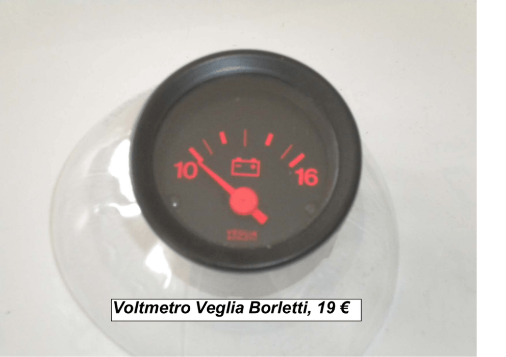 Voltmetro Veglia Borletti, 19 € Termometro temperatura acqua Veglia Borletti, 20 € Termometro temperatura acqua Veglia Borletti, 20 € Orologio digitale, 22 € Manometro pressione olio Veglia Borletti, 20 € Strumento pressione turbo Fiat Uno N. fiat 0009943025, 46 €