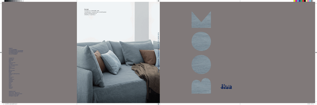 CoverBOOK_trasformabili2014.indd 1 31/10/14 10:57 Pratici, intelligenti, astuti e straordinariamente versatili, i trasformabili Flou sono elementi d’arredo che riassumono in modo ideale un moderno concetto dell’abitare e dell’ospitalità e rappresentano la miglior soluzione per risolvere problemi di spazio e per chi ha l’esigenza, se occorre, di disporre di un letto in più. Ma sono soprattutto la dimostrazione oggettiva, misurabile e concreta di quanto sia facile convertire la zona giorno in camera da letto e viceversa, all’insegna di un codice di flessibilità, eleganza e funzionalità. Practical, intelligent, smart and astonishingly versatile, the convertible pieces of furniture by Flou are the perfect solution for the modern concept of living and hospitality and represent the optimal solution for problems of space when extra beds are required. But above all, they are the objective, measurable and real demonstration of how easy it is to transform the living room into a bedroom and vice versa, with the concepts governed by versatility, elegance and ease of function. Prácticos, inteligentes, astutos y extraordinariamente versátiles, los transformables de Flou son elementos de moblaje que resumen de una forma ideal un concepto moderno del habitar y de la hospitalidad y que constituyen la mejor solución para los problemas de espacio y para quienes tienen la exigencia, si fuese necesario, de disponer de una cama más. Pero sobre todo demuestran de una manera objetiva, mensurable y concreta, cuán fácil puede ser transformar la zona día en una habitación y viceversa, con arreglo a un código de flexibilidad, elegancia y funcionalidad. Praktisch, intelligent, clever und ungeheuer vielseitig: Bettsofas und wandelbare Betten von Flou sind Einrichtungselemente, die auf ideale Art und Weise moderne Wohn- und Gastlichkeitskonzepte in sich vereinen und stellen die beste Lösung dar, wenn man wenig Platz hat und bei Bedarf ein weiteres Bett benötigt. Aber vor allem sind sie der objektive, messbare und konkrete Beweis dafür, wie schnell Wohn- in Schlafraum verwandelt werden kann und umgekehrt, und das flexibel, elegant und praktisch. Pratiques, intelligents, astucieux et extraordinairement polyvalents, les transformables Flou sont des éléments d’ameublement qui synthétisent de manière idéale le concept moderne d’habiter et d’hospitalité. Ils représentent la meilleure solution pour résoudre les problèmes d’espaces et disposer d’un lit d’appoint en cas de nécessité. Mais ils sont surtout la démonstration objective, mesurable et concrète de la facilité avec laquelle la zone living peut se transformer en chambre à coucher et vice versa, à l’enseigne d’un code de flexibilité, d’élégance et de fonctionnalité. letti trasformabili transformable beds camas transformables wandelbare betten lits transformables 2 3 letto trasformabile transformable bed cama transformable wandelbares bett lit transformable duetto 4 5 Letto divano Duetto (versione B con testata e pediera h 72 cm.), design Centro Ricerche Flou, completo di basco, rulli e cuscini decorativi. Rivestimento Talco454. Plaid lino 340. Letto DUETTO > P. 92-93 Bed Duetto in the sofa version (version B with headboard and foot panel cm. 72 high), design Centro Ricerche Flou, complete with seat cover, roll cushions and decorative cushions, with Talco 454 cover. Flax plaid 340. Bed DUETTO > P. 92-93 Cama Duetto en la versión sofá (versión B cabezal y piecero h 72 cm.), diseño Centro Ricerche Flou, con funda de asiento, rulos y cojines decorativos con revestimiento Talco 454. Plaid lino 340. Cama DUETTO > Pág. 92-93 Bett Duetto, Sofa -Version (Version B mit Kopfteil und Fussteil 72 cm. hoch), Design Centro Ricerche Flou,mit Sitzbezug, Kissenrollen und Deko-Kissen, Bezug Talco 454. Plaid aus Flachs 340. Bett DUETTO > Seite 92-93 Lit Duetto version canapé (version B, tête et pied de lit h 72 cm.), design Centro Ricerche Flou, avec housse d’assise, polochons et coussins décoratifs, avec revêtement Talco 545. Plaid en lin 340. Lit DUETTO > page 92-93 6 7 letto trasformabile transformable bed cama transformable wandelbares bett lit transformable duetto 8 9 Letti Duetto versione divano (testata, pediera e schienale h 72 cm.), design Centro Ricerche Flou, completi di basco, rulli e cuscini decorativi. Rivestimento Naturali 288. Letto DUETTO > P. 92-93 Beds Duetto in the sofa version ( headboard, foot panel and backrest cm. 72 high), design Centro Ricerche Flou, complete with seat cover, roll cushions and decorative cushions, with Naturali 288 cover. Bed DUETTO > P. 92-93 Camas Duetto en la versión sofá (cabezal, piecero y respaldo h 72 cm.), diseño Centro Ricerche Flou, con funda de asiento, rulos y cojines decorativos con revestimiento Naturali 288. Cama DUETTO > Pág. 92-93 Betten Duetto, Sofa -Version (Kopfteil, Fussteil und Rückenteil 72 cm. hoch), Design Centro Ricerche Flou,mit Sitzbezug, Kissenrollen und Deko-Kissen, Bezug Naturali 288. Bett DUETTO > Seite 92-93 Lits Duetto version canapé (tête, pied de lit et dossier h 72 cm.), design Centro Ricerche Flou, avec housse d’assise, polochons et coussins décoratifs, avec revêtement Naturali 288. Lit DUETTO > page 92-93 10 11 letto trasformabile transformable bed cama transformable wandelbares bett lit transformable duetto 12 13 Pagina precedente: letto Duetto con secondo letto (testata, pediera e schienale h 72 cm.), design Centro Ricerche Flou, rivestimento Job 332. Sul letto: rulli, cuscini decorativi e coordinato copripiumino Row 7188. In questa pagina: il secondo letto di Duetto è dotato di un meccanismo con pistone a gas che consente di portarlo facilmente all'altezza del primo letto. Letto DUETTO > P. 92-93 On the previous page: bed Duetto with its second bed (headboard, foot panel and backrest cm. 72 high), design Centro Ricerche Flou, with Job 332 cover. On the bed: roll cushions, decorative cushions and the bed-linen set Row 718
