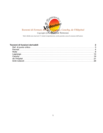 Teoremi di Fermat, Rolle, Lagrange, Cauchy, de l`Hôpital