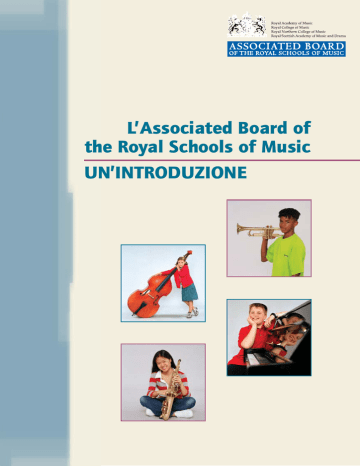 L’Associated Board of the Royal Schools of Music UN’INTRODUZIONE CHE COS’ È L’ASSOCIATED BOARD L’Associated Board of the Royal Schools of Music (ABRSM) è l’ente più importante del mondo per quanto riguarda il campo degli esami musicali, sia pratici sia teorici. In oltre 90 paesi, più di 630 mila candidati ogni anno sostengono i nostri esami, nella consapevolezza che i loro resultati verranno riconosciuti in tutto il mondo. L’essenza del nostro lavoro è un impegno totale nei confronti dell’educazione musicale. Esami e prove – una struttura semplice e chiara che con sente di misurare i progressi conseguiti in campo musicale Pubblicazioni – materiale di supporto didattico e per esami accompagnato da un ampio e svariato repertorio supplementare Sviluppo professionale – corsi, workshop e seminari per insegnanti di musica strumentale e canto L’autorità dell’Associated Board è conferita da quattro dei maggiori conservatori di musica del Regno Unito: Royal Academy of Music (Londra) www.ram.ac.uk Royal College of Music, London www.rcm.ac.uk Royal Northern College of Music (Manchester) www.rncm.ac.uk Royal Scottish Academy of Music & Drama (Glasgow) www.rsamd.ac.uk 2 L’ASSOCIATED BOARD OF THE ROYAL SCHOOLS OF MUSIC: UN’INTRODUZIONE Prima pubblicazione nel 2004 The Associated Board of the Royal Schools of Music Questa pubblicazione © 2006 The Associated Board of the Royal Schools of Music ESAMI E VALUTAZIONI •Test Preparatorio (Prep Test) •Esami a livelli progressivi 1 - 8 •Diplomi •Gruppi •Livello di esecuzione (Performance Assessment) Con più di 110 anni di esperienza nel settore, L’Associated Board si distingue tra gli enti dedicati agli esami e alla didattica musicale per ampiezza oltre che importanza. Sin dal 1889 offriamo a insegnanti di musica, allievi e genitori una serie di esami e prove che garantiscono uno standard uniforme e il cui valore viene riconosciuto a livello internazionale. MOTIVAZIONE E INCORAGGIAMENTO Gli esami dell’Associated Board sono pensati al fine di motivare e incoraggiare allievi e studenti, qualunque sia il loro livello. Gli esami offrono agli studenti qualcosa di tangibile verso cui mirare il proprio studio, nonché una serie di traguardi a cui aspirare. È importante che gli studenti vengano incoraggiati il più possibile a fare musica e a confrontarsi con esperienze musicali in generale, attraverso la più ampia gamma di generi. L’ideale è che all’esperienza di far musica da soli si accompagni anche quella di gruppo. Come parte di un’educazione musicale in termini generali, gli esami dell’Associated Board sono uno strumento utilissimo, dal momento che costituiscono un metodo affidabile per valutare l’esecuzione e i progressi di un individuo. L’ASSOCIATED BOARD OF THE ROYAL SCHOOLS OF MUSIC: UN’INTRODUZIONE 3 DAI PRINCIPIANTI IN SU Gli esami a livelli progressivi e i test dell’Associated Board sono adatti a studenti di qualunque età e grado di abilità – chiunque può trarne beneficio. Sebbene vi siano dei candidati che, iniziando dal Test Preparatorio, progrediscono poi dal Livello 1 gradualmente fino al Livello 8, non esiste uno schema obbligatorio: i candidati possono cominciare al livello a loro più consono e non importa assolutamente se ne “saltano” uno. L’Associated Board è dell’opinione che ai fini di una buona esecuzione sia essenziale possedere una conoscenza e una comprensione approfondita degli elementi musicali. È per questo che, prima di procedere negli esami strumentali dei Livelli 6, 7 e 8, i candidati devono superare l’esame al Livello 5 (o superiore) di Teoria della Musica o di Abilità Musicale. TEST PREPARATORIO Il Test Preparatorio (Prep Test) è stato ideato per chi studia uno strumento da non meno di sei mesi e non più di nove. Il perseguimento di questo primo traguardo promuove e incoraggia attivamente lo sviluppo di una buona tecnica e una solida musicalità, oltre a introdurre il candidato a un’esperienza nuova, quella cioè di prepararsi ad affrontare un esame di musica. 4 Il Test Preparatorio mira ad essere rilassato e piacevole – non prevede voti, promozioni o bocciature. Finita l’esecuzione, a valutazione ultimata, ai candidati viene consegnato un attestato su cui l’esaminatore ha annotato commenti positivi e utili. L’ASSOCIATED BOARD OF THE ROYAL SCHOOLS OF MUSIC: UN’INTRODUZIONE Livelli 1 - 8 Gli esami a livelli progressivi riflettono le tappe logiche dello sviluppo musicale dell’allievo. Sono previsti esami a livelli progressivi nelle seguenti materie: Abilità Musicale Arpa Bombardino Canto Chitarra Clarinetto Clavicembalo Contrabbasso Cornetta (in Si bemolle e in Mi bemolle) Corno Corno in Mi bemolle Eufonio Fagotto Flauto Flauto Dolce (Contralto e Soprano) Flicorno Oboe Organo Percussioni Pianoforte Sassofono (Contralto/Baritono e Soprano/Tenore) Teoria della Musica Tromba Trombone Trombone a chiave di basso Tuba (in Mi bemolle, in Fa, in Si bemolle e in Do) Viola Violino Violoncello L’ASSOCIATED BOARD OF THE ROYAL SCHOOLS OF MUSIC: UN’INTRODUZIONE 5 Livelli 1 - 8 Esami strumentali e di canto Esistono programmi d’esame per più di 35 materie, dalla percussioni al pianoforte, dal clavicembalo al corno. I brani contenuti in ciascun programma sono scelti con grande attenzione al fine di offrire un repertorio più ampio possibile senza perdere di vista gli elementi chiave richiesti a ogni livello di abilità. Si spera che un repertorio così vasto e vario funga da ispirazione sia per gli insegnanti che per gli studenti stessi. Gli esami pratici si articolano in quattro parti, in modo da dare ai candidati la possibilità di dimostrare la propria bravura tramite brani preparati e prove di conoscenza musicale: •brani o canzoni tratti dal programma •scale e accordi spezzati/arpeggi oppure, per cantanti, una canzone tradizionale senza accompagnamento •lettura a prima vista •test orali (un test di comprensione all’ascolto) Li