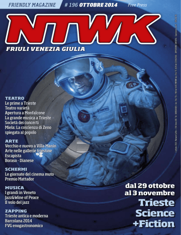 # 196 Ottobre 2014 friuli venezia giulia Teatro Le prime a Trieste Teatro varietà Apertura a Monfalcone La grande musica a Trieste Società dei concerti Miela: La coscienza di Zeno spiegata al popolo Arte Vecchio e nuovo a Villa Manin Arte nelle gallerie triestine Escapista Boraso - Dianese Free Press 1 ottobre 2014 / Network Caffè n. 194/ Anno XIX / Tel. 3488044685 / Aut. Trib. TS n. 980 del 9/4/199NTWK Aut. Trib. TS 1028 del 22/06/2001 - DIFFUSIONE GRATUITA - Spedizione in A.P. - 70% DC TS friendly magazine Schermi Le giornate del cinema muto Premio Mattador Musica I grandi in Veneto Jazz&Wine of Peace Il volo del jazz Zapping Trieste antica e moderna Barcolana 2014 FVG enogastronomico dal 29 ottobre al 3 novembre Trieste Science +Fiction 2014-15 una stagione da favola! in collaborazione con www.ilrossetti.it 196 FRIENDLY MAGAZINE # 196 OTTOBRE 2014 Free Press 1 luglio 2014 / Network Caffè n. 194/ Anno XIX / Tel. 3488044685 / Aut. Trib. TS n. 980 del 9/4/199NTWK Aut. Trib. TS 1028 del 22/06/2001 - DIFFUSIONE GRATUITA - Spedizione in A.P. - 70% DC TS ottobre2014 FRIULI VENEZIA GIULIA TEATRO Le prime a Trieste Teatro varietà Miela: La coscienza di Zeno spiegata al popolo Apertura a Monfalcone La grande musica a Trieste Società dei concerti ARTE Vecchio e nuovo a Villa Manin Arte nelle gallerie triestine Escapista Boraso - Dianese Tel. 348 8044685 www.ntwk.it [email protected] [email protected] STAFF Direzione FABIO FIERAMOSCA Lorenzo De Vecchi > DA PAGINA 4 Finis terrae e Sissi a Miramar, le prime a Trieste Albanese e il mago di Oz al Rossetti I cartelloni del comunale di Monfalcone e del Miela Grande musica al Teatro Verdi / Presentata la stagione della Società dei Concerti triestina SCHERMI Science + Fiction Le giornate del cinema muto Premio Mattador MUSICA I grandi in Veneto Jazz&Wine of Piece Il volo del jazz ZAPPING Trieste antica e moderna Barcolana 2014 FVG enogastronomico dal 29 ottobre al 3 novembre Trieste Science +fiction In copertina: Liev Schreiber in una scena di The Last Days on Mars di Ruairi Robinson (Gran Bretagna, Irlanda 2013) Impaginazione Incipit, Trieste Un grazie a tutti gli Uffici stampa ed alle Agenzie di comunicazione che hanno fornito materiale per questo numero. TEATRO ARTE > DA PAGINA 12 Vecchie e nuove mostre di Villa Manin Fotografia protagonista in regione / Design, illustrazione, arte contemporanea nelle gallerie triestine / Escapista: Summer on a solitary beach Rosanna Boraso e Marco Dianese SCHERMI da pagina 4 Science+Fiction, il Festival della fantascienza A Pordenone Le giornate del cinema muto Premio Mattador MUSICA Stampa Pignani Printing Formello , Roma NTWK è un’edizione: da pagina 12 > DA PAGINA 24 I grandi concerti di ottobre si concentrano nel Veneto / Controtempo, il jazz decolla in autunno nel Friuli Venezia Giulia / Dhome, la nuova musica notturna a Trieste in Cittàvecchia / Le nostre rubriche, consigli e giudizi sulla musica di oggi ZAPPING > DA PAGINA 29 La Barcolana e gli eventi collaterali, c’è anche un omaggio a Marconi / Autunno in festa, tra castagne, zucche e l’amore per la natura Registro periodici autorizzazione Tribunale di Trieste n. 980 del 9/4/1998 e n. 1028 del 22/6/2001 Alcune immagini e testi riprodotti sono usati a scopo informativo e divulgativo e mantengono il © dei rispettivi detentori. La responsabilità su giudizi ed opinioni espressi negli articoli è esclusivamente di chi li ha firmati o siglati e non necessariamente della direzione o della proprietà editrice. Le date dei concerti possono subire variazioni o errori di stampa: decliniamo ogni responabilità ed invitiamo ad usare le info disponibili. È vietata la riproduzione anche parziale dei testi o delle immagini senza espressa autorizzazione della casa editrice. Questo numero è stato chiuso per la stampa il 1 ottobre 2014. > DA PAGINA 20 da pagina 24 NTWK CAFFÉ > DA PAG. 32 Le date del Friuli Venezia Giulia da pagina 29 Distribuzione gratuita GLI INDIRIZZI DOVE TROVI NTWK A TRIESTE: HOTEL MILANO, v. Ghega 17 • JOLLY HOTEL v. Cavour 7 • HOTEL DUCHI p. Unità d’Italia 2 • BAR ROMA4 v.Roma 4 • BIP COMPUTER v. Donota 9 • DIME v.Milano 21 • SABBADIN v. Roma 28 • CENTER FITNESS v. San Nicolò13 • LA PORTIZZA p. Borsa 6 • BAR URBANIS p. Teatro 4 • SPAZIO 11 v. S.Caterina 11 • CAFFE JOICE v. Roma 14 • BAR REX g. Protti 1 • UTAT POINT c. Italia 6 • CAFFE’ TORINESE c. Italia 2 • BUFFET BORSA v. Cassa Risparmio 2 • RISTOBAR PRIMO v. Santa Caterina 9 • CAFFE’ STELLA POLARE v. Dante 14 • CAFFE’ TOMMASEO p. Tommaseo 4/c • MALABAR p. San Giovanni 6 • CAFFE’ VIA DELLE TORRI v.delle Torri 3 • BAR ALPINO v. San Lazzaro 8 • CAFFE’ PONCHIELLI v.Ponchielli 3/b • LA FELTRINELLI v. Mazzini 39 • BAR X v. Coroneo 11 • CIRCUS v. San Lazzaro 11 • CAFFE’ SAN MARCO v.Battisti 11 • LA PREFERITA v.le XX Settembre 29 • AQVEDOTTO v.le XX Settembre 37/c • COSTA v.le XX Settembre 24 • CAFFE’ROSSETTI v.le XX Settembre 45/a • BAR EXCELSIOR v.le XX Settembre 3 • BAR HARRY’S v.Carducci 2/c • TABACCHI ST.CENTRALE p. Libertà • CREMA&CIOCCOLATA v. Dante14/a • OSTERIA ISTRIANO r. Grumula 6 • SIORA ROSA p. Hortis 3 • EMEROTECA p. Hortis 4 • BAR UNIVERSITA’ v. Vecchia Università 1/b • BIBLIOTECA STATALE l.go Papa Giovanni 6 • CASA DELLA MUSICA v. Capitelli 3 • KNULP v. Madonna del Mare 7/a • BAR STELLA l.go Pitteri 4 • CALZEDONIA p. Borsa 4 5 • BAR ROSSETTI V. XX Settembre 43 • BAR AUDACE p.Unità d’Italia 3/a • CAFFETTERIA del BORGO v. Malcanton 6 • OSTERIA da MARINO v. del Ponte 5 • INFORMAGIOVANI v. Procureria 2/a • SOL del SUR v. d. Campanelle 85 • VIA EMILIA c/o C. C. MONTEDORO v. Flavia 119 • TEATRO MIELA, p. degli Abruzzi 3 • Vinerie Pirona, via dell’Annunziata 6/c • BOTTEGA DEL CAFFè, via Ugo Foscolo 19 4 TEATRO TRIESTE / POLITEAMA ROSSETTI / DAL 22 AL 26 OTTOBRE Dove la terra finisce Finis terrae apre la stagione con uno spettacolo di denuncia Fin