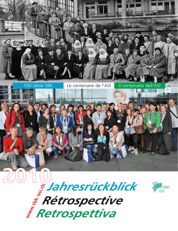 100 Jahre SBK Le centenaire de l’ASI Il centenario dell’ASI 2010Jahresrückblick Rétrospective Retrospettiva Wir bilden Zukunft! Vier Weiterbildungspartner im Gesundheitswesen gründen die neue Weiterbildungsinstitution Careum Weiterbildung. Ab 1. 1. 2012 führen die Partner ihre Weiterbildungen gemeinsam. Angebote für Spitäler, Heime, Spitex in den Bereichen Pflege & Betreuung Alter(n) & Generationen Beratung & Kommunikation Lehren & Lernen Führung & Management Informationen www.careum-weiterbildung.ch Pierre Théraulaz Président Barbara Gassmann Vizepräsidentin Liebe Leserin, lieber Leser Chère lectrice, cher lecteur Cara lettrice, caro lettore Verschiedene Anlässe im Jubiläumsjahr «100 Jahre SBK» haben uns bewusst gemacht, wie sehr wir mit unserer Geschichte verbunden sind und wie viel unsere Vorgängerinnen und Vorgänger zur Entstehung unseres Verbandes und zur Entwicklung unseres Berufes geleistet haben. Die Vergangenheit hat uns gelehrt, dass der Beruf eine attraktive Zukunft hat, wenn Verbandsangehörige in jeder Epoche engagiert für ein starkes Bild der Pflege einstehen. Im Rückblick, den Sie in den Händen halten, lesen Sie, wie im SBK an der Zukunft der Pflege gebaut wird. Dafür bilden solide Verbandsstrukturen, welche Wachstum und Entwicklung ermöglichen, eine wichtige Grundlage. Die ausserordentliche Delegiertenversammlung hat im November 2010 mit grosser Mehrheit den neuen Verbandsstatuten zugestimmt. Mit dem Abschluss des Projekts «Professionelle Pflege Schweiz – Perspektive 2020» wird die Positionierung des SBK zu inhaltlichen Fragen der Pflege definiert. Dies bildet ein weiteres Element, um als Beruf gestärkt und als Verband zukunftsfähig zu sein. Zahlreiche Menschen in der Geschäftsstelle des SBK, in den Sektionen und Fachverbänden (neue Bezeichnung für die Interessegemeinschaften) haben tagtäglich daran gearbeitet, Ihre Interessen zu vertreten, Pflege sichtbar zu machen und Ihnen beruflich mit Rat und Tat beizustehen. Dieser Rückblick berichtet davon. Les nombreuses manifestations organisées à l’occasion du centenaire de l’association nous montrent à quel point nous sommes liés à notre passé et nous font prendre conscience de tout ce qu’ont fait nos prédécesseurs pour créer et développer notre profession. L’histoire nous apprend que l’avenir de la profession est prometteur si les membres de l’association s’engagent pour une image forte des soins infirmiers. La Rétrospective que vous avez entre les mains vous présente les activités entreprises par l’ASI pour construire l’avenir des soins infirmiers. De solides structures associatives constituent une base indispensable pour assurer un processus de croissance et d’évolution. Dans ce sens, les nouveaux statuts de l’ASI ont été approuvés à la grande majorité par l’Assemblée extraordinaire des délégués en novembre 2010. Le projet «Les soins infirmiers en Suisse – perspectives 2020» permettra de définir le positionnement de l’ASI quant aux contributions futures des soins infirmiers. Cela aussi servira à renforcer la profession et à permettre à l’association de répondre aux défis qui s’annoncent. Durant toute l’année, de nombreux collaborateurs et collaboratrices au Secrétariat central de l’ASI, dans les sections et dans les associations spécialisées (nouvelle désignation pour les communautés d’intérêts) ont œuvré pour représenter vos intérêts, rendre visibles les soins infirmiers et vous soutenir sur le plan professionnel. Cette Rétrospective vous en offre une synthèse. Le numerose manifestazioni in occasione del giubileo per i 100 anni dell’ASI ci hanno reso consapevoli dello stretto legame con il nostro passato e di quanto i nostri predecessori abbiano contribuito alla creazione e allo sviluppo della nostra associazione. La storia ci ha insegnato quanto il futuro della professione dipenda dall’impegno di chi la esercita nel difendere una forte immagine delle cure. Nella retrospettiva che state sfogliando potete leggere quali sono le strategie future dell’ASI nella costruzione della professione. Solide strutture associative, garanzia di crescita e sviluppo, sono una base indispensabile per questo processo. L’Assemblea straordinaria del novembre 2010 ha votato a larga maggioranza i nuovi statuti dell’ASI. Portando a termine il progetto «Cure professionali Svizzera – Prospettive 2020» si definirà il posizionamento dell’ASI riguardo i contenuti delle cure. Ciò costituisce un ulteriore tassello per consolidare la professione e permettere all’associazione di affrontare il futuro con gli opportuni strumenti. Ogni giorno, sia presso il segretariato centrale, che nelle varie sezioni e associazioni specializzate (nuovo termine per le comunità di interessi) molti collaboratori hanno dato il massimo per difendere i vostri interessi, rendere visibili le cure e offrirvi il loro sostegno. Questa retrospettiva ve ne rende partecipi. 1 careum Verlag Careum Verlag, Pestalozzistrasse 3, 8032 Zürich Tel. 0041 (0)43 222 51 50 [email protected], www.careum.ch Sterben und Tod Eine interprofessionelle Auseinandersetzung Beschreibung: Abschiednehmen aus der Sicht der Religion, Medizin, Geschichte, Psychoanalyse usw. Zielgruppen: Pflegefachpersonen, Landeskirchen, Sterbehospize, Psychologen, Seelsorger, Laien 15,5 x 22,5 cm 210 Seiten 18 Farbabbildungen 1. Auflage 2009 Artikel Nr. C-7083 35.– CHF Ein Unfall ist passiert Pflegende unterstützen Unfallverletzte im Bewältigungsprozess Beschreibung: Erweitertes Wissen für alle Pflegenden, praxisnah mit vielen Fallgeschichten und einem Vorwort von Dr. Silvia Käppeli, Zürich Zielgruppen: Studierende Höhere Fachschule Pflege, Pflegefachpersonen, Gesundheitswesen, Betreuungsfachpersonen 15,5 x 22,5 cm 210 Seiten 1. Auflage 2009 Artikel Nr. C-6847 35.– CHF Emi-, Immi-, Remi Lesedrama mit soziokulturellem Hintergrund der albanischen Migration in der Schweiz Dramë le