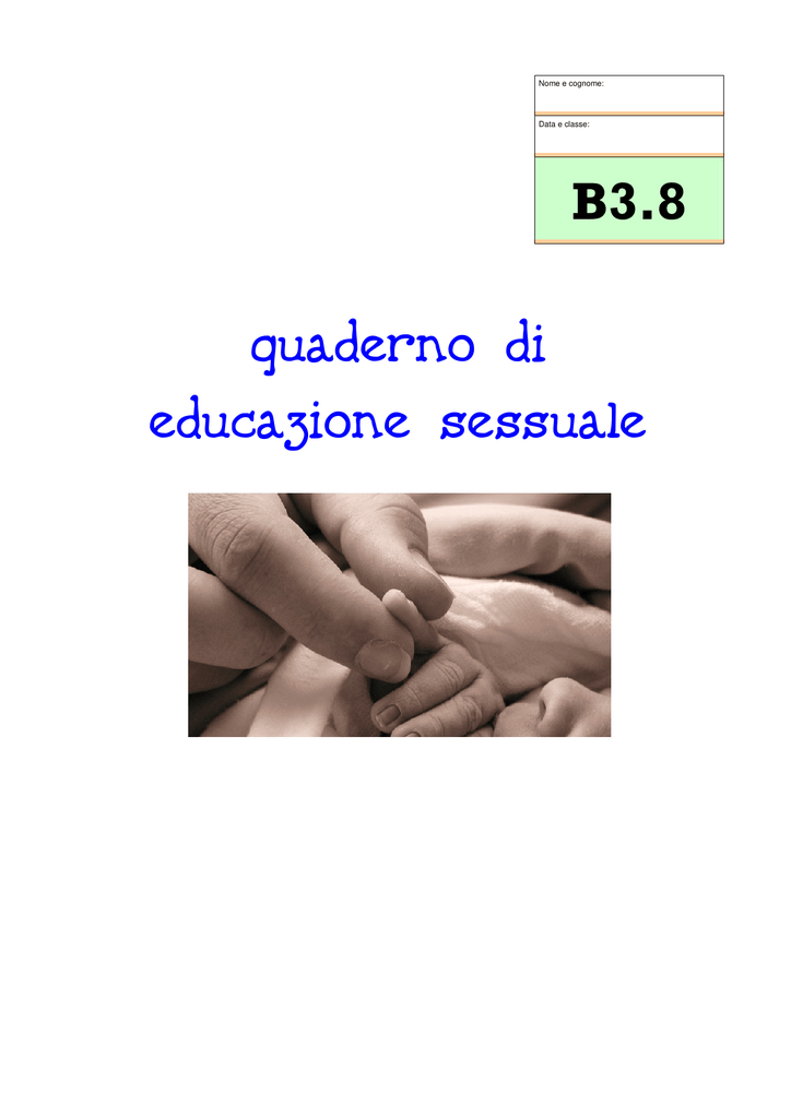 Nome e cognome: Data e classe: B3.8 quaderno di educazione sessuale «Dio creò l'uomo a sua immagine. Li creò maschio e femmina.» Moshe d'Egitto, XVI secolo a.C. «Beati i puri di cuore, perché vedranno Dio.» Yeshua ben Yosef, I secolo d.C. Figura 1. Pagina da un rotolo di Qumram (www.mullings.com). due diversi punti di vista… COLOPHON: Stampato nella Repubblica e Cantone del Ticino, Elvezia, presso la stamperia SME di Riva San Vitale ● Edizione 2007 ● © Sandro Ribi, Ligornetto, Svizzera ● [email protected] ● Parte dei testi e delle immagini possono provenire da internet, dizionari, enciclopedie, testi di colleghi, del DECS, di "Medicina Educativa" e del "Consultorio Familiare". ● Accetto volentieri correzioni e suggerimenti. ● Nome del file: «bio34 800 sessualità TEORIA (ttf)» ● Data di stampa: 29 gen 2007 20:45 ● Numero di parole: 10407 SCIENZE ● BIOLOGIA ● 802 Introduzione Innanzitutto voglio incoraggiare allievi e genitori a discutere insieme almeno parte degli argomenti trattati in questo capitolo. È vero che ciò può risultare un po' difficile, data la differenza d'età (e non sempre è uno svantaggio) e la fase critica adolescenziale che attraversano i ragazzi e le ragazze di 3a e 4a media. Ma dobbiamo pur riconoscere che i figli sono nati proprio grazie alla sessualità complementare dei genitori… Queste pagine non hanno pretese di completezza. Accetto volentieri correzioni e contributi. La sessualità è un dono meraviglioso che permette di approfondire immensamente l'intimità di una relazione umana. Poiché la riproduzione umana avviene proprio tramite la sessualità, essa acquista un valore sociale ancora più determinante. Per questo si può affermare che la famiglia è la "cellula della società" – dove tutto inizia. Perché 1+1=3 ? 1+1=3 vuole rammentare una delle funzioni principali del sesso. L'inizio Tutti gli organismi che hanno riproduzione sessuale (gli organismi più complessi), presentano individui che possiedono organi sessuali maschili e femminili (stami, testicoli, pistilli, ovaie) che producono cellule sessuali (cellule polliniche, ovuli e spermatozoi). La riproduzione Esistono almeno 4 tipi "naturali" di riproduzione, dipendono dalla complessità dell'organismo vivente (da microbi ad animali): Divisione cellulare Coniugazione Una delle forme più semplici di riproduzione asessuata che si riscontra p.es. negli animali unicellulari. Consiste essenzialmente nella divisione di un individuo – il "genitore" – in due individui "figli" di dimensioni pressappoco uguali. È l'unione di due individui i quali, attraverso un "ponte citoplasmatico", si scambiano parte delle informazioni genetiche. Avviene talvolta fra microbi unicellulari. Gemmazione Riproduzione sessuata Modo di riproduzione asessuata, per cui l'organismo produce da un lato del corpo una "gemma" che crescerà dando eventualmente origine ad un altro individuo separato. Tipo di riproduzione vegetativa di organismi unicellulari come i lieviti. È la riproduzione che necessita di individui con organi e cellule sessuali differenziate: maschili e femminili. Nella riproduzione una cellula maschile e una cellula femminile, ambedue con metà delle informazioni genetiche, si uniscono per formare un nuovo individuo. Figura 2. Testicoli, nei quali vengono prodotti gli spermatozoi. Nell'uomo, la cellula riproduttiva maschile è lo spermatozoo. Ogni spermatozoo è una cellula microscopica formata da una testa, contenente il nucleo e da una lunga coda detta flagello, che gli conferisce la capacità di movimento. Nel nucleo sono contenuti 23 cromosomi (n) recanti i caratteri ereditari del padre. La produzione degli spermatozoi nell'uomo comincia nel periodo della pubertà cioè quando l'individuo diventa sessualmente adulto. Lo spermatozoo ha il compito di fecondare la cellula uovo e dare così origine ad un nuovo essere vivente. Figura 3. Disegno di spermatozoo. La cellula riproduttiva femminile è detta cellula uovo. È grande quanto una capocchia di spillo e nel suo nucleo contiene 23 cromosomi (n) recanti i caratteri ereditari della madre. Le cellule uovo sono tantissime e, a differenza degli spermatozoi, sono già presenti nelle ovaia della femmina fin dalla nascita. Ogni mese, a partire dalla pubertà (12-13 anni), una delle due ovaie libera un ovulo maturo che entra nella tuba di Falloppio. A questo punto può avvenire la fecondazione La cellula uovo viene fecondata dagli spermatozoi presenti nella tuba. Con la fecondazione si forma una SCIENZE ● BIOLOGIA ● 803 nuova cellula chiamata zigote contenente 46 cromosomi (23 maschili e 23 femminili). Lo zigote rappresenta la prima cellula da cui trarrà origine un nuovo organismo. Un solo spermatozoo fra milioni riesce a penetrare attraverso la membrana dell'ovulo. Questo può avvenire nella tuba di Falloppio, dopo l'ovulazione. gono la metà delle informazioni genetiche (23 cromosomi ciascuno) dei genitori, così il figlio generato possiederà in ugual misura i caratteri ereditari dei genitori. Figura 7. Fecondazione, numero e provenienza dei cromosomi. La gravidanza Figura 4. Indica i termini in italiano. Avvenuta la fecondazione, la cellula uovo fecondata (zigote) inizia a dividersi per mitosi dando origine ad una piccola sfera detta morula che si dirige verso l'utero. Nel corso di una settimana la morula si trasforma in una doppia sfera cava di cellule (blastocisti), che si insedia nella parete uterina (annidamento). Inizia così la gravidanza o gestazione che dura circa nove mesi. Dopo la fecondazione (in una delle tube di Falloppio) l'ovulo scende dalla tuba – mentre iniziano già le prime divisioni cellulari – e arriva nell'utero, dove si annida nella mucosa uterina. Dall'ovulo si formano: il feto, il cordone ombelicale, la placenta, il sacco e il liquido amniotico. La placenta è l'organo che si attacca alla parete dell'utero e che ha la funzione di nutrire il bambino durante la gravidanza, fornendogli l'ossigeno e 