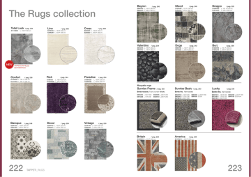 Bayron The Rugs collection Total Look S111X698 / pag. 224 L. 160 P. 260 cm. Line / pag. 252 S27X185 L. 160 P. 230 cm. S28X298 L. 200 P. 300 cm. Cross / pag. 240 S98X195 L. 155 P. 230 cm. S99X310 L. 200 P. 290 cm. / pag. 246 Drappo S100X195 S101X310 / pag. 228 L. 155 P. 230 cm. L. 200 P. 290 cm. / pag. 250 S25X225 L. 160 P. 230 cm. S26X360 L. 200 P. 300 cm. Valentino / pag. 234 S94X276 L. 160 P. 230 cm. S95X415 L. 190 P. 290 cm. NEW Mood S73X195 L. 155 P. 230 cm. S74X310 L. 200 P. 300 cm. Doge / pag. 242 S96X145 L. 158 P. 220 cm. S97X225 L. 200 P. 285 cm. Burj / pag. 256 S102X195 L. 155 P. 230 cm. S103X310 L. 200 P. 290 cm. TAPPETo In PEllE lEAThEr rug Confort / pag. 226 S110X245 L. 160 P. 230 cm. S111X375 L. 200 P. 285 cm. Rich / pag. 244 S18X185 L. 160 P. 230 cm. S18/2X298 L. 200 P. 300 cm. Paradise S108X330 S109X538 / pag. 254 L. 160 P. 230 cm. L. 200 P. 300 cm. Moquette rugs Sunrise Frame Baroque / pag. 248 S33X125 L. 158 P. 220 cm. S34X195 L. 200 P. 285 cm. Decor / pag. 236 S29X145 L. 155 P. 220 cm. S30X215 L. 200 P. 285 cm. Vintage / pag. 233 Lucky / pag. 233 Bordo filo. Yarn border. S90X235 L.140 P. 200 S91X328 L. 70 P. 230 S85X160 L.140 P. 200 S86X242 L.170 P. 230 S87X218 L.200 P. 200 S80X120 L. 140 P. 200 S81X185 L. 170 P. 230 S82X165 L. 200 P. 200 S92X305 L.200 P. 200 S93X410 L.200 P. 290 S88X305 L. 200 P. 290 S89X205 ø 200 S83X238 L. 200 P. 300 S84X158 ø 200 cm. / pag. 230 S31X145 L. 158 P. 220 cm. S32X225 L. 200 P. 285 cm. / pag. 238 S105X210 L. 200 P. 290 cm. TAPPETI_RUGS Sunrise Basic Bordo filo. Yarn border. Britain 222 / pag. 232 Bordo tessuto. Fabric border 10 cm. America / pag. 239 S107X210 L. 200 P. 290 cm. 223 Total Look Il tappeto ed I cuscInI In pelle, la tela In canvas nel grande formato rIportano la stessa ImmagIne, per un vero effetto total look. NEW TAPPETo In PEllE LeATheR RUG S111X698 -160x260 cm. Tappeto in pelle decorata con fantasia ToTAl looK. Leather rugs with TOTAL LOOK decor. TAPPETI / RUGS Wallpaper volume 1 CoNSuLTA iL NoSTRo CATALoGo WALLPAPER PER DECoRARE ANCHE LE PARETi iN ToTAL Look. viSiT OUR new wALLPAPeR cATALOGUe FOR DecORATinG The wALLS in A TOTAL LOOK eFFecT. mod. Eclettica QuADrI / PAinTinG for a real total look effect: rugs and cushions in leather, big canvas paintings with the same decor. mod. Dream 01 Total Look Total look Pag. 198-199 T31X39 Cuscino. Rug. TAPPETo iN PELLE STAMPATA CoN CuCiTuRE A ViSTA DECoRATiVE, DiSPoNiBiLE iN TuTTE LE FANTASiE ToTAL Look. PRinTeD RUG in LeATheR wiTh DecORATive SeAm, AvAiLAbLe in ALL TOTAL LOOK PATTeRnS. mod. Textured 1461-DX125 100x150 cm. Quadro su tela canvas. Painting canvas. Novità! Tappeti e cuscini in pelle, stampati in Total Look ...e tanti altri motivi da scegliere nella sezione Total Look Pag. 198-199 news! Leather rugs and cuscions printed in Total Look ...see all the decors avaiable in the Total Look section P. 198-199 CusCInI / cUShiOnS S111X698 Tappeto. Rug. 01 224 02 03 04 05 T31X39 50x50 cm. Cuscini in pelle decorata con retro in tessuto. Varie fantasie in ToTAl looK. Indicare il soggetto desiderato al momento dell’ordine. Decorated leather cushions with fabric background. Different TOTAL LOOK patterns. Specify the subject code at the order. TAPPETI_RUGS Tappeti solo per uso interno. Rugs only for indoor use. 225 Confort Confort. S110X245 Marrone. brown. L. 160 P. 230 cm. Tappeto in microfibra disponibile in 2 misure. microfibre rug, available in 2 sizes. Confort. S110X245 Confort. S111X375 L. 160 P. 230 cm. L. 200 P. 285 cm. Colori disponibili: Available colors: Confort. S110X245 Bianco. white. L. 160 P. 230 cm. 226 Bianco cipria / white powder TAPPETI_RUGS Avorio / ivory Tappeti solo per uso interno. Rugs only for indoor use. Marrone / brown grigio / Grey 227 Drappo Drappo. S101X310 Melanzana. Aubergine. L. 200 P. 290 cm. Tappeto in ciniglia disponibile in 2 misure. chenille rug, available in 2 sizes. Drappo. S100X195 Drappo. S101X310 L. 155 P. 230 cm. L. 200 P. 290 cm. Colori disponibili: Available colors: Drappo. S101X310 nero. black. L. 200 P. 290 cm. 228 nero / black TAPPETI_RUGS Melanzana / Aubergine. Tappeti solo per uso interno. Rugs only for indoor use. 229 Vintage Vintage. S32X225 grigio. Grey. L. 200 P. 285 cm. Vintage. S31X145. Tortora. Dove color. L. 158 P. 220 cm. Tappeto in ciniglia disponibile in 2 misure e 2 colori. chenille rug, available in 2 sizes and 2 colors. Vintage. S31X145 L. 158 P. 220 cm. Vintage. S32X225 L. 200 P. 285 cm. Colori disponibili: Available colors: 230 grigio / Grey TAPPETI_RUGS Tortora / Dove color Tappeti solo per uso interno. Rugs only for indoor use. 231 Sunrise Frame Sunrise Lucky Basic Acciaio. Grey steel. Moro. Dark. Porpora. Purple. Tappeto effetto velluto con bordo filo. velvet effect rug twith yarn border. Tappeto effetto velluto con bordo filo. velvet effect rug with yarn border. Misure disponibili. Available size. Sunrise basic. S85X160 l. 140 P. 200 cm. Sunrise basic. S86X242 l. 170 P. 230 cm. Sunrise basic. S87X218 l. 200 P. 200 cm. Sunrise basic. S88X305 l. 200 P. 290 cm. Sunrise basic. S89X205 ø 200 cm. bordo / border 10 cm Bordo tessuto. Fabric border. Bordo filo. Yarn border. Misure disponibili. Available size. Lucky. S80X120 l. 140 P. 200 cm. Lucky. S81X185 l. 170 P. 230 cm. Lucky. S82X165 l. 200 P. 200 cm. Lucky. S83X238 l. 200 P. 300 cm. Lucky. S84X158 ø 200 cm. Sunrise frame. Sunrise Basic. Lucky Colori disponibili. Available color. Colori disponibili. Available color. Bordo filo. Yarn border. Sunrise frame. Tappeto effetto velluto con bordo tessuto da 10 cm. velvet effect rug with 10 cm fabric border. Moro. Dark. Acciaio. Grey steel. Tortora. Dove color. rosso. Red. Verde. Green. Melanzana. Aubergine. Crema. cream. Porpora. Purple. Marrone. brown. nocciola. hazel. Misure disponibili. Available size. Sunrise frame. S90X235 l. 140 P. 200 cm. Sunrise frame. S91X328 l. 170 P. 230 cm. Sunrise frame. S92X305 l. 200 P. 200 cm. Sunrise frame. S93X410 l. 200 P. 290 cm. 232 TAPPETI_RUGS Beige beige. Bianco. white. Tappeti solo p