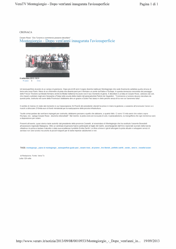 Dopo 20 anni inaugurata l`aviosuperficie