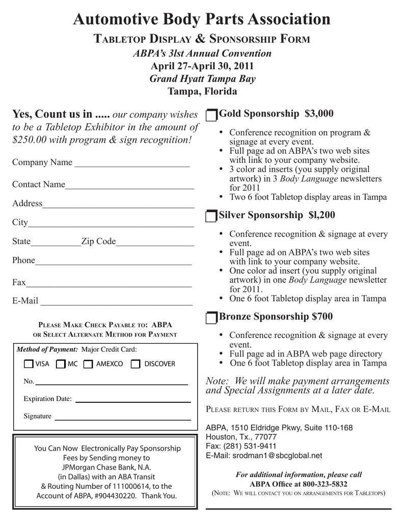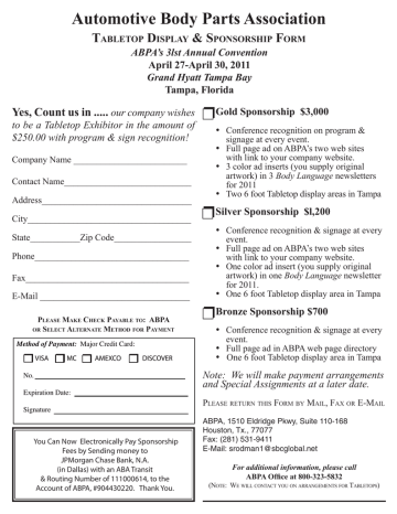 Tampa Tabletop/Sponsorship - Automotive Body Parts Association
