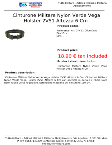 Cinturone Militare Nylon Verde Vega Holster 2V51 Altezza 6 Cm 18