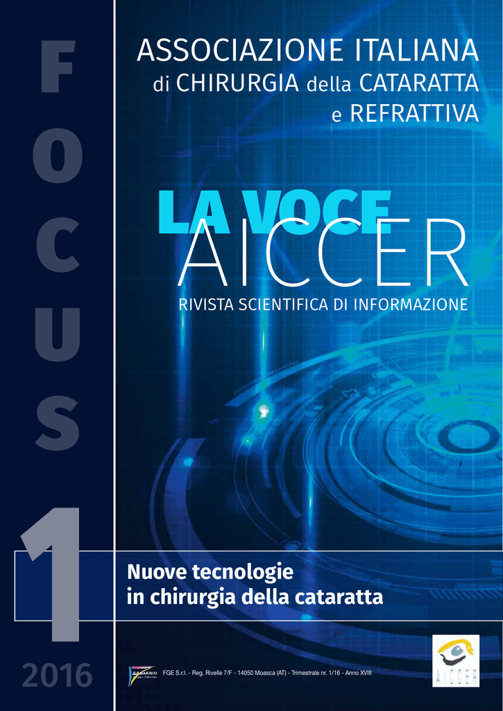 F O LA VOCE C aiccer U S ASSOCIAZIONE ITALIANA di CHIRURGIA della CATARATTA e REFRATTIVA RIVISTA SCIENTIFICA DI INFORMAZIONE Nuove tecnologie in chirurgia della cataratta 2016 FGE S.r.l. - Reg. Rivelle 7/F - 14050 Moasca (AT) - Trimestrale nr. 1/16 - Anno XVIII Dispo nib per S ile anche Scari martphone su APP cala gratu e Tablet itame nte ASSOCIAZIONE ITALIANA DI CHIRURGIA DELLA CATARATTA E REFRATTIVA Responsabile Editoriale Scipione Rossi Vice-Direttore Editoriale Dario Aureggi Direttore Responsabile Ferdinando Fabiano Comitato Pubblicazioni AICCER Giovanni Alessio, Roberto Bellucci, Vincenzo Orfeo, Riccardo Sciacca Redazione Segreteria AICCER c/o AIM Group - AIM Congress Srl Via G. Ripamonti, 129 - 20141 Milano tel. 02 56601.1 - fax 02 56609045 e-mail: [email protected] Dr. Scipione Rossi e-mail: [email protected] RIVISTA SCIENTIFICA DI INFORMAZIONE 1 2016 F ASSOCIAZIONE ITALIANA O LA VOCE C aiccer U S di CHIRURGIA della CATARATTA e REFRATTIVA RIVISTA SCIENTIFICA DI INFORMAZIONE Nuove tecnologie in chirurgia della cataratta 2016 FGE S.r.l. - Reg. Rivelle 7/F - 14050 Moasca (AT) - Trimestrale nr. 1/16 - Anno XVIII ISSN 1973-9419 Registrazione presso il Tribunale di Asti n° 5/98 del 15/12/1998 Segreteria di Redazione Segreteria AICCER Chiuso in redazione: febbraio 2016 FGE S.r.l. tel. 0141 1706694 e-mail: [email protected] Il contenuto degli articoli pubblicati è di esclusiva responsabilità degli autori. La riproduzione di articoli o parte di essi deve essere autorizzata dall’Editore. Grafica e Stampa FGE S.r.l. Pubblicità FGE S.r.l. Reg. Rivelle 7/F - Moasca (AT) tel. 0141 1706694 e-mail: [email protected] Inserzionisti: Alcon AMO Farmigea Sifi Théa Zeiss 4, 15 2, III cover 37 29 44, 45, 46, 47, IV cover II cover FGE S.r.l. - Reg. Rivelle 7/F - 14050 Moasca (AT) Tel. 0141 1706694 - Fax 0141 856013 - [email protected] - www.fgeditore.it SOMMARIO EDITORIALE..................................................................................................................................................... 5 di Vincenzo Orfeo CHIRURGIA DELLA CATARATTA La chirurgia della cataratta con laser a femtosecondi: luci e ombre dello studio ESCRS......................................6 di Roberto Bellucci CHIRURGIA DELLA CATARATTA Know-how del laser a femtosecondi per la chirurgia della cataratta...................................................................8 di Daniele Tognetto, Chiara De Giacinto, Tommaso Candian, Alessandro Bova CHIRURGIA DELLA CATARATTA Chirurgia della cataratta con Laser a Femtosecondi: organizzazione della sala operatoria............................. 16 di Giuseppe Perone CHIRURGIA DELLA CATARATTA Correzione dell’astigmatismo con laser a femtosecondi durante intervento cataratta....................................... 20 di Vincenzo Maurino e Francesco Sabatino CHIRURGIA DELLA CATARATTA Il Chair Time per l’impianto di una IOL Premium.............................................................................................. 26 di Giovanni Alessio e Nicola Frugis CHIRURGIA DELLA CATARATTA Le IOL multifocali trifocali................................................................................................................................. 30 di Francesco Carones e Alessandro Franchini CHIRURGIA DELLA CATARATTA Nostra esperienza con IOL Acu-focus IC8........................................................................................................ 34 di Alberto Amisano, Antonio Toso, Simonetta Morselli CHIRURGIA DELLA CATARATTA Gli strumenti monouso ed il concetto della strumentazione monopaziente........................................................ 38 di Riccardo Sciacca SPECIALE Nel ricordo di un Amico.................................................................................................................................. 43 Lucio Buratto - Luigi Caretti PROSSIMA PUBBLICAZIONE Lucio Buratto - Luigi Caretti Chirurgia del GLAUCOMA TESTO ATLANTE Reg. Rivelle 7/F - 14050 Moasca (AT) - Tel. 0141 1706694 - Fax 0141 856013 [email protected] - www.fgeditore.it Chirurgia del GLAUCOMA TESTO ATLANT E Fabiano Grup po Editoriale di Vincenzo Orfeo Cari amici dell’AICCER, nei giorni 10, 11 e 12 marzo 2016, prende il via un grande congresso a Roma, al Policlinico Gemelli. Presieduto da Aldo Caporossi, il 19° congresso AICCER offre all’oculista molti spunti di riflessione, molti approfondimenti e, nello spirito della nostra società, tanta chirurgia in diretta! La sessione principale sarà ugualmente suddivisa in due aule parallele dove si svolgeranno in contemporanea tutte le Main Session. Molte altre sessioni saranno in sovrapposizione su differenti argomenti tranne che nelle ore della chirurgia in diretta. Dopo il successo degli anni scorsi si ripeteranno i Meet the Expert, incontri tra esperti e giovani per focalizzare argomenti specifici; inoltre ci saranno varie riunioni congiunte con altre importanti società e vari lunch symposia. Le più autorevoli aziende hanno fatto a gara per aggiudicarsi tempi e spazi per valorizzare i loro prodotti e noi dell’AICCER siamo ben lieti di proporre agli oculisti interessati tutte le novità del mercato. Avrà uno spazio importante anche la sessione AICCER giovani caratterizzata da video presentati da giovani e commentati da esperti. Quest’anno avremo anche una novità di particolare interesse per i tanti medici che effettuano missioni umanitarie o che aspirano a partecipare ad una di esse. L’AICCER infatti prevede nel suo programma anche una sessione dedicata ai medici missionari. Sarà uno spazio nel quale ci si potrà confrontare su vecchi e nuovi problemi e che sarà particolarmente utile per coloro che, giovani o meno giovani, si vogliano avvicinare a quel meraviglioso mondo che è l’attività medico-chirurgica umanitaria. “L’AICCER per le missioni umanitarie” sarà coordinato dal sottoscritto con l’aiuto di Giuseppe Perone, missionario da più di 10 anni e da Alessandro Mularoni già più vol