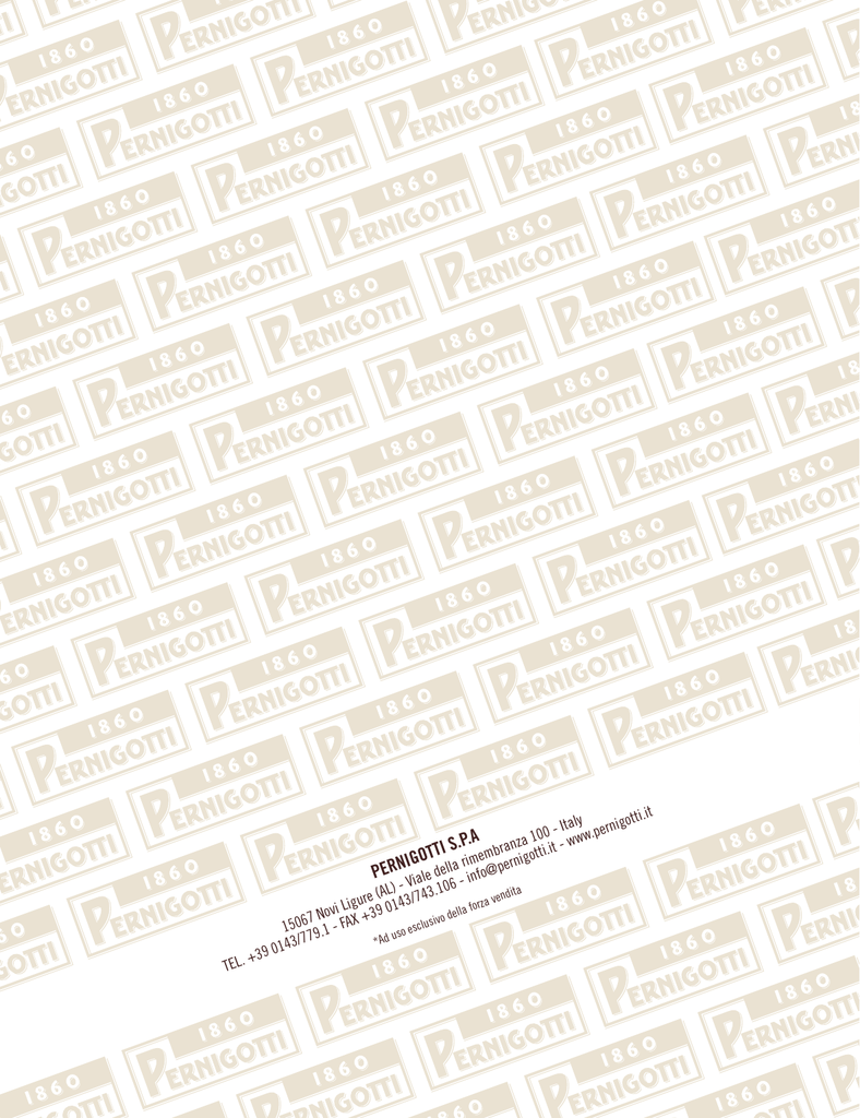 t TEL. +39 i.i aly ernigott t I 00 w.p S.P.A mbranza 1tti.it - ww I T T o IGO rime ernig PERN Viale della - info@p L) .106 ta endi re (A 143/743 u g rza v i o L f 0 i a l v del +39 7 No sivo 1506 9.1 - FAX esclu o s u /77 *Ad 0143 È il 1860 quando Stefano Pernigotti apre una rinomata drogheria nel centro di Novi Ligure. Da subito la sua produzione dolciaria riscuote un grande successo al punto che nel 1868 Stefano, insieme al figlio, fonda la società Pernigotti & Figlio, costruendo una fabbrica che diventerà presto un punto di riferimento della città. La qualità eccellente e la sapienza artigiana applicate a grandi numeri vengono premiate nel 1882 dall’onorificenza dello stemma reale quale fornitore ufficiale della Real Casa. 2 3 Natale Factory Natale Factory Agli inizi del ‘900 l’azienda si conferma come una delle più importanti del settore, con macchinari all’avanguardia e ricette sempre più pregiate. Nel 1914 con l’inizio della I Guerra Mondiale viene proibito l’uso dello zucchero nella preparazione di prodotti dolciari. Con intuizione e maestria Paolo Pernigotti modifica la ricetta del Torrone sostituendo lo zucchero con quantità di miele più concentrate, ottenendo un prodotto dal gusto e dalla consistenza unici. Il 1927 è un anno di svolta con l’inizio della produzione del grande classico della tradizione dolciaria piemontese: Il Gianduiotto. Nel 1936 viene avviata la produzione di creme per gelati, che successivamente hanno acquisito quote sempre maggiori, qualificando Pernigotti tra le primarie aziende del settore. Dal trasferimento nella sede attuale Pernigotti continua a crescere, acquisendo aziende concorrenti ed espandendosi all’estero. 4 Natale Factory A partire dagli anni ’70 l’azienda gestisce una gamma di prodotti estesa nei gusti, nelle forme e nei sapori, diventando una delle protagoniste principali nel mercato dei cioccolatini più noti, Gianduiotto e Cremino e delle barre di cioccolato, con Pepitas e Nocciolato. Negli anni l’azienda consolida la propria identità rivisitando la gamma nei gusti e nei formati e reinterpreta il proprio portafoglio prodotti diventando leader nel segmento del gianduia, arrivando alla celebrazione dei suoi 150 anni di attività. Vogliamo offrire ai nostri consumatori momenti di piacere memorabili deliziando i loro palati con molteplici esperienze di gusto adatte a tutte le eta’ e momenti di consumo. 2014 l’anno della svolta. ricerca continua del miglior equilibrio tra qualità e gusto 7 passione e integrità in tutte le nostre azioni osservazione DEL MONDO CHE CI CIRCONDA ED ASCOLTO DEI NOSTRI INTERLOCUTORI SVILUPPO SOSTENIBILE COME GARANZIA DEL FUTURO DELL’AZIENDA Natale Factory L’acquisizione da parte della famiglia Töksoz, una proprietà giovane e con chiari obiettivi di sviluppo, traghetta la tradizione italiana verso una crescita internazionale rinnovando completamente l’offerta dei prodotti. amore per la marca e cultura del prodotto La Ricetta Perfetto nella sua semplicità con solo frutta secca a partire dal 37% del torrone al Cioccolato fino al 55% del Rustego top di gamma nella sua elegante confezione in lamina blu. Versioni Torroni classici e morbidi, con Nocciole, con Mandorle e con Mandorle e Nocciole insieme. Miele Un unico nome per racchiudere l’intera gamma di torroni bianchi, classici e morbidi, alle mandorle e alle nocciole. Da sempre le ricette del Torrone esprimono la qualità Pernigotti. Percentuali di Miele ancora più elevate. Torroncini Completano la linea Rustego in tre varianti: classico, morbido e morbido al cioccolato, con la stessa ricetta delle stecche. Gluten Free Tutti i prodotti firmati Rustego sono adatti anche per i consumatori celiaci. Rustego Le due ricette storiche di Torrone con le Mandorle o con le Nocciole, declinate in due formati. 14 .. la dolcezza del Miele e la croccantezza della Frutta Secca. RUSTEGO CLASSICO MANDORLA ASTUCCIO 150 g RUSTEGO CLASSICO NOCCIOLA ASTUCCIO 150 g Codice EAN: 8001675354773 Codice EAN: 8001675354780 Codice Art: P-13103005 - conf. x ct: 16 pz Codice Art: P-13103006 - conf. x ct: 16 pz + FLOOR STAND: Codice articolo: P-13103042 - conf. x ct: 48 pz + FLOOR STAND: Codice articolo: P-13103072 - conf. x ct: 48 pz 15 Natale Factory Natale Factory RUSTEGO CLASSICO MANDORLA ASTUCCIO 250 g RUSTEGO CLASSICO NOCCIOLA ASTUCCIO 250 g Codice EAN: 8001675354919 Codice EAN: 8001675354926 Codice Art: P-13103014 - conf. x ct: 12 pz Codice Art: P-13103015 - conf. x ct: 12 pz + FLOOR STAND: Codice articolo: P-13103082 - conf. x ct: 96 pz + FLOOR STAND: Codice articolo: P-13103092 - conf. x ct: 96 pz Rustego I Torroni morbidi: ricchi di Nocciole o con Mandorle e Nocciole sono declinati in due formati. 16 .. la dolcezza del Miele e la croccantezza della Frutta Secca. RUSTEGO TORRONE MORBIDO NOCCIOLE E MANDORLE ASTUCCIO 150 g RUSTEGO TORRONE MORBIDO NOCCIOLE ASTUCCIO 150 g Codice EAN: 8001675354797 Codice EAN: 8001675354803 Codice Art: P-13103007 - conf. x ct: 16 pz Codice Art: P-13103008 - conf. x ct: 16 pz + FLOOR STAND: Codice articolo: P-13103062 - conf. x ct: 48 pz RUSTEGO TORRONE MORBIDO NOCCIOLE E MANDORLE ASTUCCIO 250 g RUSTEGO TORRONE MORBIDO NOCCIOLE ASTUCCIO 250 g Codice EAN: 8001675354933 Codice EAN: 8001675354940 Codice Art: P-13103016 - conf. x ct: 12 pz Codice Art: P-13103017 - conf. x ct: 12 pz + FLOOR STAND: Codice articolo: P-13103102 - conf. x ct: 96 pz + FLOOR STAND: Codice articolo: P-13103112 - conf. x ct: 96 pz Natale Factory Natale Factory + FLOOR STAND: Codice articolo: P-13103052 - conf. x ct: 48 pz 17 Rustego La linea Rustego si arricchisce con due novità: un Torrone morbido al Cacao con il 37% di Nocciole e un Torrone classico con il 55% di Mandorle e il 19% di Miele. RUSTEGO TORRONE CLASSICO EXTRA MANDORLE E MIELE ASTUCCIO 250 g Codice EAN: 8001675354957 I Torroncini Non può mancare l’allegria dei torroncini assortiti, disponibili in due differenti formati e tutti confezionati singolarmente. MINI RUSTEGO TORRONCINI ASSO
