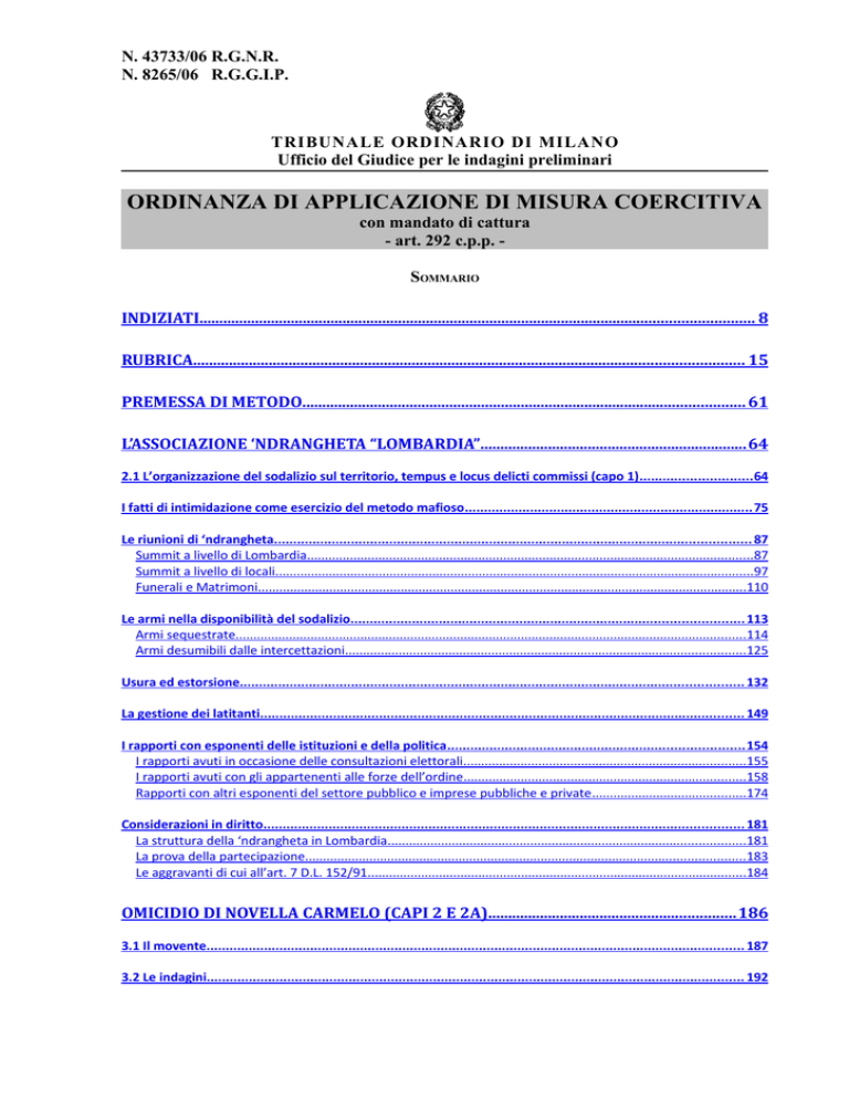 L’ASSOCIAZIONE ‘NDRANGHETA “LOMBARDIA”................................................................... 64