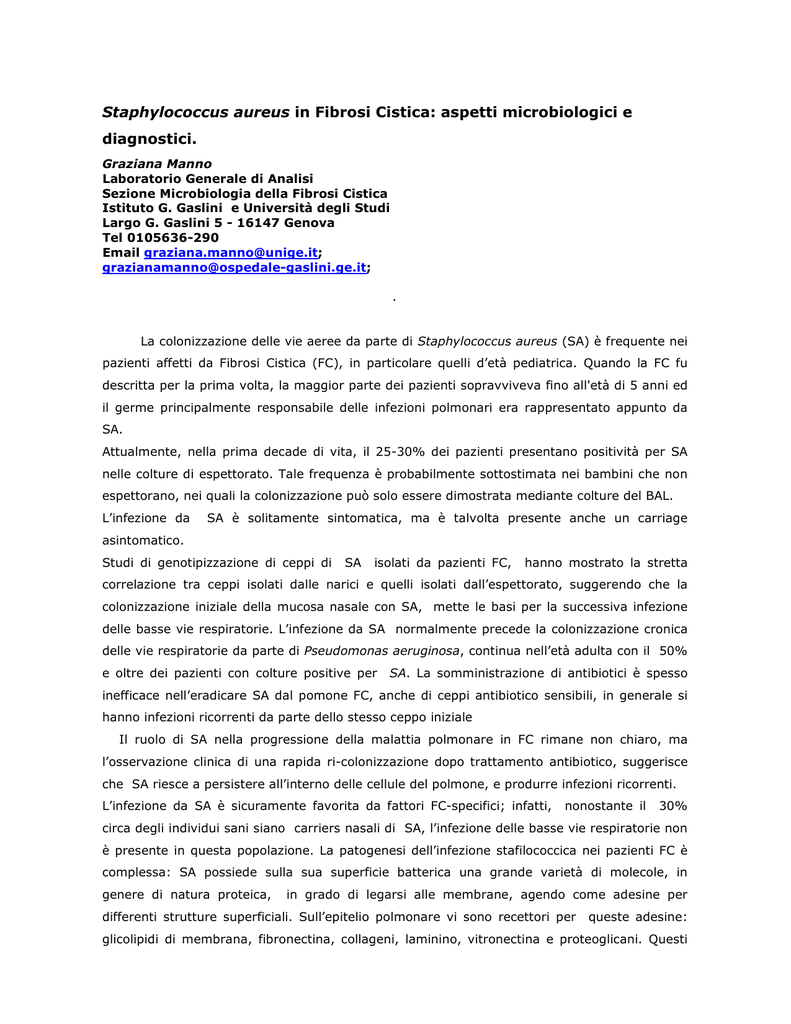 Studio su Staphylococcus aureus - Società Italiana per lo studio