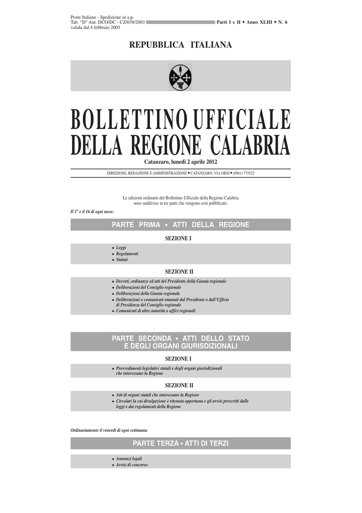 repubblica italiana bollettinoufficiale della regione calabria