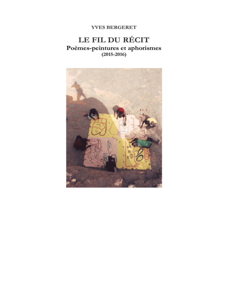YVES BERGERET LE FIL DU RÉCIT Poèmes-peintures et aphorismes (2015-2016) YVES BERGERET IL FILO DEL RACCONTO Poemi-pitture e aforismi (2015-2016) (Traduzione di FRANCESCO MAROTTA) 2 Quaderni di Traduzioni, XXIV, Marzo 2016 Yves BERGERET / Francesco MAROTTA 3 Indice pg. 5 Le Cercle de pierres pg. 24 Cheval Proue pg. 34 Fil & sillage, avec un charbonnier pg. 49 Colombage, à Rennes pg. 57 Cinq doigts pg. 68 L’Etape dans l’île pg. 77 Sang futur / L’Étape dans l’île 2 pg. 85 Vivre étrangers à Aidone, en Sicile pg. 109 Vertueuse image pg. 119 Poèmes de Cabourg 4 Le Cercle de pierres (Juin - Août 2015) 5 Il Cerchio di pietre (Giugno - Agosto 2015) 6 Poèmes tous peints en plein air pour une installation, sur papier Fabriano 200 gr de format vertical de 200 cm sur 75: première présentation publique le 26 août 2015 à Poyols avec des interventions musicales du saxophoniste Nicolas Mizen ( basées sur les éléments de la Sequenza IX de Luciano Berio ) et avec des rehauts exceptionnels de Mariam Partskhaladze (laine, soie, feutre, etc.) sur le cinquième poème. Cette installation est conçue et réalisée dans la lignée directe d’Archipel Vigie créée à Poyols et Ponet, près de Die, un an avant. A la demande des habitants de Poyols (Association des Amis de la Béoux; aide du Conseil Presbytéral) et avec leurs participations actives et remarquables le cycle de ces poèmes a été créé et réalisé sur très grands papiers en trois mois. Portée par l’éloquence métaphorique et géologique des montagnes du Diois et des reliefs de la Sicile, l’installation a pour thème central la migration (drame, exils, long voyage) toujours dans la conscience éthique de l’autre, de son écoute, du dialogue, donc de la parole qui ouvre. Poemi dipinti tutti all’aperto per una installazione, su carta Fabriano di 200 gr di formato verticale 200 cm x 75: prima presentazione pubblica il 26 agosto 2015 a Poyols con interventi musicali del sassofonista Nicolas Mizen (basati sugli elementi della Sequenza IX di Luciano Berio) e con degli eccezionali innesti in rilievo di Mariam Partskhaladze (lana, seta, feltro) sul quinto poema. Questa installazione è concepita e realizzata come diretta emanazione di Arcipelago Vedetta realizzato a Pyols e Ponet, presso Die, un anno prima. Alla richiesta degli abitanti di Poyols (Associazione degli Amici della Béoux; assistenza del Consiglio della Canonica) e con la loro partecipazione attiva e significativa, il ciclo di questi poemi è stato creato e realizzato su tre grandi fogli di carta in tre mesi. Sostenuta dall’eloquenza metaforica e geologica delle montagne del Diois e dei rilievi della Sicilia, l’installazione ha come tema centrale la migrazione (dramma, esili, lunghi viaggi) sempre con la coscienza etica dell’altro, del suo ascolto, del dialogo, dunque della parola che apre. 7 1 Exceptionnellement peint à Aidone, au cœur de la Sicile au format vertical 260 cm x 75, le jeudi 11 juin 2015 Dipinto eccezionalmente a Aidone, nel cuore della Sicilia in formato verticale di 260 cm x 75, giovedì 11 giugno 2015 Des cavaliers sautèrent dans le vide, la falaise signait leur mâle destin. Puis une femme prit sa monture, la fit tourner dans la paume des montagnes. Les alouettes à tue-tête acquiesçaient invisibles, là-haut. Puis les martinets, dans l’éloquence sonore de la beauté qui ne possède pas. Uomini a cavallo saltarono nel vuoto, la falesia attestava il loro maschio destino. Poi una donna prese la sua cavalcatura, la fece girare nel palmo delle montagne. Le allodole, invisibili là in alto acconsentirono a gran voce. Anche le rondini, nell’eloquenza sonora della bellezza che non ha possesso. 8 2 Créé et peint sur les galets du lit de la Sure, juste à l’amont de Sainte-Croix, près de Die le jeudi 25 juin 2015 en pensant à la Crête d’Aucelon Creato e dipinto sui sassi del letto della Sure, proprio a monte di Sainte-Croix, presso Die giovedì 25 giugno 2015 pensando alla Cresta di Aucelon Les maîtres font ravaler aux nourrissons leur langue, les puissants applaudissent, rachètent. Lui, scindant, scindé, tranchant, tranché, ouvrant le ciel en deux partage les eaux entre ubac et adret. Effrayé du pouvoir que son geste lui jette au visage, sacrificateur sans victime si ce n’est de lui-même, auberge de chair et de sang dont cave et grenier brûlent, pilote aux yeux crevés, il entend sans fin les tambours de dépossession, cherche, en jetant de part et d’autre dans le vide des pierres, cherche la parole claire. 9 I maestri fanno disprezzare ai bambini la loro lingua, i potenti applaudono, ricompensano. Lui, separando, separato, recidendo, reciso, aprendo il cielo in due divide le acque tra il versante nord e quello sud. Spaventato dal potere che il suo gesto gli imprime sul viso, sacrificatore senza vittima se non di se stesso, ostello di carne e di sangue dove cantina e solaio bruciano, pilota dagli occhi accecati, sente ininterrottamente i tamburi della deprivazione, cerca, scagliando da una parte e dall’altra pietre nel vuoto, cerca la parola chiara. 10 3 Créé et peint le lundi 29 juin 2015 dans une clairière de Combemal, à Rousset, sur les hauts plateaux du Vercors près de Die en pensant aux piliers verticaux du Roc d’Ambanne Creato e dipinto lunedì 29 giugno in una radura di Combemal, a Rousset, sugli alti pianori del Vercors nei pressi di Die pensando ai pilastri verticali della Roc d’Ambanne Lui traverse à gué le détroit portant sur ses épaules le monde harassé, hirsute, argile et ténèbre. Cette aube il sera le haut pilier calcaire pour porter son âme vers le dixième ciel où le sédiment devient allégresse puis sera une montagne qui se penche pour poser au sec le monde, ôter son vieux masque et lui parler. Lui attraversa lo stretto a guado reggendo sulle spalle il mondo spossato, scompigliato, argilla e tenebra. Quest’alba sarà l’alto pilastro calcareo per portare la sua anima