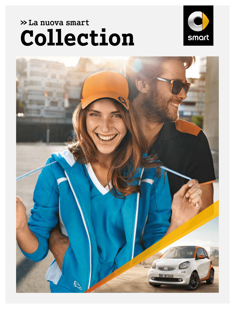 >> La nuova smart Collection style >> FOR more in my life. passion 02 | 03 Polo, da uomo. Nera con dettagli arancioni. 100 % cotone piqué. Applicazioni in rete sulle spalle e in vita. Orli delle maniche e in vita con effetto doppio strato. Taglie S-XXL. B6 799 3572-3576 Berretto passion. Arancione/nero. 100 % poliestere. Inserti in rete sul retro. Regolabile in larghezza. B6 799 3579 Occhiali da sole passion. Montatura in acetato, esterno nero, interno arancione. Lenti grigie. Protezione UV 400, categoria di filtro 3. B6 799 3098 passion 04 | 05 Berretto di maglia passion. Arancione/nero. Lana/acrilico. Etichetta con pittogramma smart. Taglia unica. B6 799 3581 Felpa, da uomo.* Nera con tocchi arancioni sulle spalle e sulle maniche. 70 % cotone/30 % poliestere. Con cappuccio. Taglie S-XXL. B6 799 3567-3571 * Disponibile a breve. Torcia tascabile LED, solare. Arancione/nero. Materiale sintetico. Spegnimento automatico. Durata della luce fino a 6 ore. Batteria agli ioni di litio. Si carica in 1 giorno di luce solare. Antispruzzo. Cordoncino per il trasporto. Lunghezza ca. 6,8 cm. B6 799 3076 Custodia per iPhone® 5/5s. Arancione. Materiale sintetico. B6 799 3583 Portachiavi con moschettone. Arancione/nero. Alluminio anodizzato/nastro in reps. Lunghezza ca. 11 cm. B6 799 3591 Mini-ombrello. Nero/arancione. Rivestimento in 100 % poliestere. Stecche in alluminio/acciaio/fibra di vetro, asta in acciaio cromato. Struttura «windproof». Apertura e chiusura automatiche. Diametro da aperto ca. 89,5 cm. Lunghezza da chiuso ca. 20 cm. B6 799 3588 passion 06 | 07 Borsa da viaggio. Nero opaco/arancione. PVC. Grande scomparto principale con scomparto a rete. Tasca esterna. Cinghie di trasporto. Cinghie a zaino e cinghia a tracolla staccabili imbottite. Dimensioni ca. 61 x 38 x 38 cm. B6 799 3577 hello >> FOR more how are you? proxy/prime 08 | 09 Berretto di maglia proxy. Bianco/blu. Lana/acrilico. Etichetta con pittogramma smart. Taglia unica. B6 799 3580 Felpa, da donna.* Turchese con dettagli bianchi sul davanti e sul retro. 70 % cotone/30 % poliestere. Con cappuccio. Applicazioni laterali in rete. Taglie XS-XL. B6 799 3552-3556 * Disponibile a breve. Portachiavi con moschettone. Blu/nero. Alluminio anodizzato/nastro in reps. Lunghezza ca. 11 cm. B6 799 3592 Polo, da donna.* Turchese con dettagli bianchi. 95 % cotone/5 % elastan. Forma sagomata. Applicazioni in rete sulle spalle e in vita. Taglie XS-XL. B6 799 3557-3561 * Disponibile a breve. Berretto Proxy. Bianco/blu. 100 % poliestere. Inserti in rete sul retro. Regolabile in larghezza. B6 799 3578 Pennetta USB smart fortwo. Bianca/blu. Materiale sintetico/metallo. USB 2.0. C apacità 8 GB. Compatibile con Windows ® e Mac OS®. B6 799 3593 proxy/prime 10 | 11 Portachiavi gettone. Acciaio. Portachiavi con gettone per carrello della spesa. Lunghezza ca. 7,5 cm. fortwo B6 799 3589 forfour B6 799 3590 Tazza da thermos. Bianca/arancione. Porcellana. Coperchio in silicone bianco con apertura per bere. Capienza ca. 0,25 l. B6 799 3585 Torcia tascabile LED, solare. Materiale sintetico. Spegnimento automatico. Durata della luce fino a 6 ore. Batteria agli ioni di litio. Si carica in 1 giorno di luce solare. Antispruzzo. Cordoncino per il trasporto. Lunghezza ca. 6,8 cm. Blu/nero B6 799 3077 Bianco/nero B6 799 3078 magic >> FOR more moments. BoConcept® 12 | 13 Tazzine da caffè, set da 2. Bianche. Porcellana. Motivi smart stampati a colori. Da BoConcept® per smart. B6 799 3088 Tazzine da caffè, set da 2. Bianche. Porcellana. Motivi smart stampati a colori. Da BoConcept® per smart. Capienza ca. 0,3 l. B6 799 3087 Cuscino. Grigio/giallo. Cotone/poliestere. A forma di pittogramma smart. Da BoConcept ® per smart. Dimensioni ca. 38 x 24 cm. B6 799 3089 >> FOR more time 1:18 smart fortwo coupé passion edition #1 C453, 1:18. Produttore: Norev. Lava orange/white B6 696 0280 smart fortwo coupé passion C453, 1:18. Produttore: Norev. Black/titania grey matt B6 696 0281 to play. 1:43 smart fortwo coupé C453, 1:43.* Produttore: Norev. White/black B6 696 0278 White/midnight blue B6 696 0277 Cool silver/moon white opaco B6 696 0279 1:87 smart fortwo coupé proxy C453, 1:18. Produttore: Norev. White/midnight blue B6 696 0282 smart fortwo coupé C453, 1:87.* Produttore: Busch. White/midnight blue B6 696 0276 Black/lava orange B6 696 0274 Black/titania grey matt B6 696 0275 * Simile all’immagine. model cars 14 | 15 1:18 smart forfour prime W453, 1:18. Produttore: Norev. Black/hazel brown B6 696 0299 Black/cadmium red B6 696 0300 smart forfour passion W453, 1:18. Produttore: Norev. Lava orange/graphite grey B6 696 0298 1:43 smart forfour W453, 1:43. Produttore: Norev. Black/black-to-yellow B6 696 0297 Black/hazel brown B6 696 0295 White/black B6 696 0296 1:87 smart forfour W453, 1:87. Produttore: Busch. Cool silver/white B6 696 0292 Black/hazel brown B6 696 0293 Black/cadmium red B6 696 0294 Modellini in diverse scale e colori. fun >> FOR more in the sun. electric drive 16 | 17 Giacca funzionale electric drive, da uomo. Anthracite/orange. 100 % poliestere. Traspirante e idrorepellente. Funzione antivento. Cappuccio a scomparsa nel collo. Diverse tasche esterne. Taglie S-XXL. B6 799 3037-3041 Giacca funzionale electric drive, da donna. White/energy green. 100 % poliestere. Traspirante e idrorepellente. Funzione antivento. Cappuccio a scomparsa nel collo. Diverse tasche esterne. Taglie XS-XL. B6 799 3032-3036 Borsa a tracolla. White/energy green. 85 % PVC/15 % poliestere. Impermeabile. Con scomparto per notebook estraibile e imbottito, scomparto esterno in rete per borraccia e tasca applicata a forma di pittogramma. Cinghia a tracolla regolabile. Logo smart sul lato. Dimensioni ca. 40 x 34 x 15 cm. B6 799 3028 Portachiavi gettone per il carello della spesa, electric drive. Acciaio legato. Portachiavi con gettone per il carello della spesa. Lunghezza ca. 7,5 cm. B6 799 3021 Orologio electric drive white. Cassa in acciaio legato. Quadrante bianco con cifre e indici ve