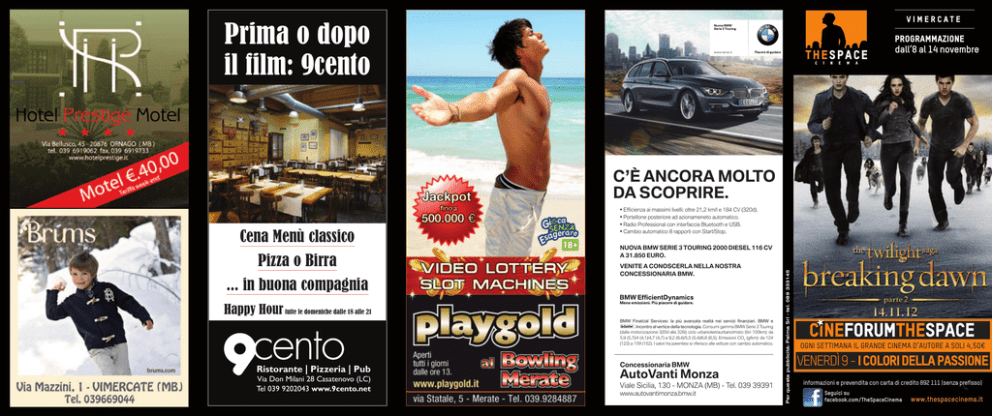 vimercate Prima o dopo il film: 9cento Programmazione dall’8 al 14 novembre C’è ANCORA MOLTO DA SCOPRIRE. Pizza o Birra ... in buona compagnia NuOvA bMw SERIE 3 TOuRINg 2000 DIESEL 116 Cv A 31.850 EuRO. vENITE A CONOSCERLA NELLA NOSTRA CONCESSIONARIA bMw. Happy Hour tutte le domeniche dalle 18 alle 21 BMW Finalcial Services: la più avanzata realtà nei servizi finanziari. BMW e . Incontro al vertice della tecnologia. Consumi gamma BMW Serie 3 Touring (dalla motorizzazione 320d alla 328i) ciclo urbano/extraurbano/misto (litri 100km): da 5,9 (5,7)/4 (4,1)/4,7 (4,7) a 9,2 (8,4)/5,5 (5,4)/6,8 (6,5). Emissioni CO2 (g/km): da 124 (123) a 159 (152). I valori tra parentesi si riferisco alle vetture con cambio automatico. Ristorante | Pizzeria | Pub Via Don Milani 28 Casatenovo (LC) Tel 039 9202043 www.9cento.net Concessionaria bMw Autovanti Monza Viale Sicilia, 130 - MOnza (MB) - Tel. 039 39391 www.autovantimonza.bmw.it Per questa pubblicità: Palma Srl - tel. 089 333145 Cena Menù classico • Efficienza ai massimi livelli: oltre 21,2 km/l e 184 CV (320d). • Portellone posteriore ad azionameneto automatico. • Radio Professional con interfaccia Bluetooth e USB. • Cambio automatico 8 rapporti con Start/Stop. CINEFORUMTHESPACE ★ OGNI SETTIMANA IL GRANDE CINEMA D’AUTORE A SOLI 4,50€ VENERDì 9 - I COLORI DELLA PASSIONE informazioni e prevendita con carta di credito 892 111 (senza prefisso) Seguici su facebook.com/TheSpaceCinema www.thespacecinema.it HAPPY MONDAY PROGRAMMAZIONE dall’8 al 14 novembre OGNI LUNEDI UN FILM A SOLI 2.50 e* 12 NOVEMBRE GLADIATORI DI ROMA vimercate Gli orari degli spettacoli possono subire variazioni senza preavviso Realizzazione editoriale: MP Quadro Srl - [email protected] * più 1 e per gli occhialini (se in versione 3D) Titoli Sab e dom 007 SKYFALL ALLA RICERCA DI NEMO 3D ARGO CODE NAME: GERONIMO GLADIATORI DI ROMA 3D GLADIATORI DI ROMA HOTEL TRANSYLVANIA 3D HOTEL TRANSYLVANIA cineforum: I COLORI DELLA PASSIONE LE BELVE VM14 L’ERA GLACIALE CONTINENTI ALLA DERIVA 007 skyfall MEGATHEATRE PARANORMAN RED LIGHTS SILENT HILL - REVELATION 3D VM14 STEP UP 4 - REVOLUTION 3D TED VM14 15.15 14.35 16.35 18.30 19.50 21.45 17.15 16.30 19.10 21.55 16.05 18.35 21.15 16.30 18.50 17.10 20.45 16.40 18.15 14.30 15.50 18.50 solo mar The Twilight Saga: Breaking Dawn - Parte 2 Sab 23.45 Fantasy Romance 1h 55min di Bill Condon dal 14/11 23.10 Commedia 1h 42min di Akiva Schaffer con Ben Stiller, Vince Vaughn NEW 21.10 17.45 21.00 17.05 16.30 19.05 21.40 14.50 19.45 no mar 00.15 NEW VM14 19.45 fino a domenica 19.00 solo lun e mer 21.00 solo lun, mar e mer THE SPACE EXTRA: FEW WORDS 19.20 21.35 15.50 14.30 15.30 23.50 3D 18.50 21.50 17.00 19.30 22.00 18.10 20.50 LA PROGRAMMAZIONE subirà VARIAZIONI MERCOLEDì 14 novembre IN OCCASIONE DELL’USCITA DI “The Twilight Saga: Breaking Dawn - Parte 2” CONSULTA IL SITO WWW.THESPACECINEMA.IT Tariffe Lun. Mar. Mer. Gio. Ven. Sab. Dom. e festivi Serale normale dopo le 17,55 8,50 8,50 6,70 8,50 8,50 8,50 Serale megatheatre dopo le 17,55 9,00 9,00 7,20 9,00 9,00 9,00 Serale sala vip dopo le 17,55 10,50 10,50 8,70 10,50 10,50 10,50 POMERIDIANO entro le 17,55 6,70 6,70 6,70 6,70 6,70 8,50 POMERIDIANO megatheatre entro le 17,55 7,20 7,20 7,20 7,20 7,20 9,00 POMERIDIANO sala vip entro le 17,55 8,50 8,50 8,50 8,50 8,50 10,50 intero 3d* no promozioni convenzioni e omaggi 10.50 10.50 10.50 10.50 10.50 10.50 Lunedi del Tifoso (3D 7 €, no sala vip) 5.00 martedì rosa (3D 8 €, no sala vip) 5.00 over 60: normale 5,50 (da lun a ven)/6,50 (sab, dom, fest e prefest), 3d* 8,50 megatheatre 6,70 (da lun a ven) 7,20 (sab, dom, fest e prefest)/sala vip 8,50 ridotto (bambini fino a 10 anni): normale 6,70/3d* 8,50/megatheatre 7,20/sala vip 8,50 *la tariffa non comprende il costo dell’occhialino 3D di 1 euro VM14 3D Azione 1h 40min di John Stockwell con Cam Gigandet, Kathleen Robertson NEW Drammatico 2h 12min di S. Castellitto con Penélope Cruz, Emile Hirsch Red Lights Argo Thriller 1h 54min di Rodrigo Cortés con Robert De Niro, Sigourney Weaver Thriller 2h 00min di Ben Affleck con Ben Affleck, John Goodman NEW Viva l’Italia Commedia 1h 56min di Massimiliano Bruno con Raoul Bova, Michele Placido Le Belve 007 Skyfall The Possession Drammatico 2h 11min di oliver Stone con John Travolta, Salma Hayek Azione 2h 23min di Sam Mendes con Daniel Craig, Judi Dench Horror 1h 32min di ole Bornedal con Jeffrey Dean Morgan, Kyra Sedgwick Alla ricerca di Nemo Gladiatori di Roma Animazione 1h 47min di Andrew Stanton e Lee Unkrich Animazione 1h 34min di Igino Straffi VM14 L’Era Glaciale 4 Continenti alla deriva Horror 1h 35min di M. J. Bassett con A. Clemens, Kit Harington 22 e 23 novembre prossimamente da giovedì 15 novembre VM14 ParaNorman Animazione 1h 32min di Chris Butler e Sam Fell 3D Silent Hill Revelation 23.30 Venuto al mondo Commedia 1h 46min di Seth MacFarlane con M. Wahlberg, Mila Kunis 3D 20.30 solo martedì Code Name: Geronimo Ted Animazione 1h 31min di G. Tartakovsky 19.55 22.15 no ven 19.30 22.05 17.20 22.10 no mar THE SPACE EXTRA: ColdPlay live 2012 THE SPACE EXTRA: C’ERA UNA VOLTA IN AMERICA (DIRECTOR’S CUT) NEW Hotel Transylvania 14.45 14.30 14.40 NEW Vicini del terzo tipo 21.15 solo ven THE POSSESSION VM14 THE WEDDING PARTY - UN MATRIMONIO CON SORPRESA VENUTO AL MONDO VICINI DEL TERZO TIPO VIVA L’ITALIA Ven e sab 23.05 Tutti i giorni Animazione 1h 33min di S. Martino 12, 13 e 14 novembre 7 Psicopatici The Wedding Party Un matrimonio con sorpresa Commedia 1h 30min di Leslye Headland con Kristen Dunst 13 novembre La sposa promessa Il sole dentro PER ORARI E PRENOTAZIONI CONSULTARE IL SITO WWW . THESPACECINEMA . IT Durante il film ci sarà un intervallo di 5 minuti. Apertura box office: Sabato e Domenica ore 13.00; Tutti gli altri giorni ore 16.00; In fo r ma z io n i e pr e ve n d ita : con carta di credito: 892 111 (senza prefisso) dalle ore 10.00 alle ore 21.00 (da telefono fisso e da cellulari per tutti gli operatori 0.96€, H3G 1.