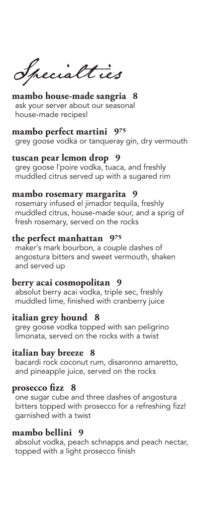 Specialties - Mambo Italiano Cafe