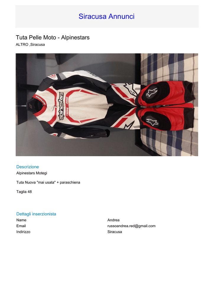 Siracusa Annunci - Tuta Pelle Moto