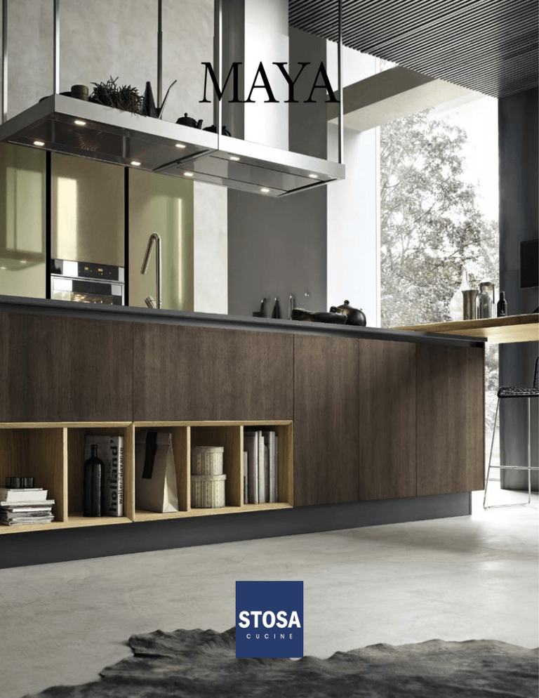 MAYA STOSA UNA FAMIGLIA ITALIANA. 50 ANNI DI STORIA E UNA SOLA GRANDE PASSIONE: LA CUCINA. DA 50 ANNI PRODUCIAMO SOLO CUCINE, CREATE E PRODOTTE PER MIGLIORARE LA VITA DI CHI, OGNI GIORNO, VIVE NELLO SPAZIO PIÙ CONVIVIALE DELLA CASA. PROGETTIAMO E REALIZZIAMO ESCLUSIVAMENTE IN ITALIA PRODOTTI ECCELLENTI NELLA QUALITÀ, REALMENTE SOSTENIBILI PER OGNI FAMIGLIA ITALIANA E PER I GIOVANI. ECCO PERCHÉ UNA CUCINA STOSA NASCE DA VALORI AUTENTICI COME IMPEGNO, ONESTÀ, RISPETTO E ORIGINALITÀ. IN ITALIA E IN OLTRE 40 PAESI NEL MONDO, CON UN MERCATO IN COSTANTE ESPANSIONE. IMPEGNO PER DARE IL MEGLIO DI NOI ATTRAVERSO OGNI SINGOLA CUCINA, DIRETTAMENTE A CASA TUA. ONESTÀ PER TRASFORMARE I NOSTRI PROGETTI IN SPAZI DI VITA DAVVERO SOSTENIBILI. RISPETTO PER LA NATURA CHE CI CIRCONDA E PER TUTTA LA FILIERA PRODUTTIVA. ORIGINALITÀ PER ESSERE SEMPRE PIÙ COMPETITIVI NELL’INNOVAZIONE TECNOLOGICA E FUNZIONALE. È COSÌ CHE OGNI GIORNO COSTRUIAMO LE NOSTRE CUCINE. PENSANDO A TE. STOSA, AN ITALIAN FAMILY. 50 YEARS OF HISTORY AND ONE GREAT PASSION: KITCHENS. FOR 50 YEARS WE’VE BEEN PRODUCING ONLY KITCHENS, DESIGNED AND BUILT FOR THOSE WHO ENJOY SPENDING TIME IN THE MOST WELCOMING ROOM IN THE HOME. OUR PRODUCTS, DESIGNED AND MADE ENTIRELY IN ITALY, STAND OUT FOR THEIR QUALITY YET ARE AFFORDABLE FOR ITALIAN FAMILIES AND YOUNG PEOPLE. BECAUSE A STOSA KITCHEN IS BASED ON AUTHENTIC VALUES LIKE COMMITMENT, HONESTY, RESPECT AND ORIGINALITY - IN ITALY AND A FURTHER 40 COUNTRIES WORLDWIDE, WITH A CONSTANTLY GROWING MARKET. COMMITMENT TO OFFER OUR BEST IN EVERY SINGLE KITCHEN, DIRECTLY IN YOUR OWN HOME. HONESTY TO TURN OUR DESIGNS INTO TRULY SUSTAINABLE LIVING AREAS. RESPECT FOR THE NATURE SURROUNDING US AND FOR THE WHOLE PRODUCTION CHAIN. ORIGINALITY TO BE MORE AND MORE COMPETITIVE WITH REGARDS TECHNOLOGICAL AND PRACTICAL INNOVATION. THAT’S HOW WE BUILD OUR KITCHENS EVERY DAY. THINKING OF YOU. MAYA Visita il sito Cucine Moderne Cucina modello Maya SCELGO L’ANTA CON IL SISTEMA MAYA LA CUCINA CHE TI OFFRE MOLTISSIME POSSIBILITÀ DI SCELTA. ANTA CON O SENZA MANIGLIA, SORPRENDENTI FINITURE DA ABBINARE PER OTTENERE LA MASSIMA PERSONALIZZAZIONE. MAYA THE KITCHEN THAT OFFERS MULTIPLE SELECTIONS. Door with or without handle, surprising finishes that can be combined for maximum customisation. 2 GOLA I SELECT THE DOOR WITH THE GROVE SYSTEM PRESA MANIGLIA GRIP HANDLE pag. TASCA / POCKET 8 pag. 32 SCELGO L’ANTA CON LA MANIGLIA I SELECT THE DOOR WITH THE HANDLE pag. 36 MANIGLIE / HANDLES STOSA CUCINE ti offre una vasta serie di maniglie da abbinare all’anta del modello MAYA: cromate, satinate, dalla forma lineare o arcuata, scegli tu quella più adatta allo stile che vuoi dare alla tua cucina! STOSA KITCHENS offer you a wide range of handles to combine with the Maya model door: chrome-plated, satin, linear or arched, select the one that best suites the style you want for your kitchen! 3 Nobilitato opaco SUPER MATT SUPER MATT melamine matt Iron Desert Bianco puro White Pure Nobilitato materico Textured melamine Noce Diamond Diamond Walnut Noce Platin Platin Walnut Noce Bronzo Bronze Walnut Rovere Sabbia Sand Oak Rovere Jeans Jeans Oak Laminato iridescente Iridescent laminate Verde Bronzo iridescente Iridescent Bronze Green Crema iridescente Iridescent cream FINITURE 4 FINISHES Laminato lucido Glossy laminate Bianco puro White Pure Iron Desert 5 Le possibilità del SISTEMA Groove SYSTEM possibility GOLA Linee forti, decise percorro le composizioni che utilizzano la presa maniglia. Un elemento decorativo e funzionale che punta all’essenzialità. Per gli amanti del design. PRESA MANIGLIA GRIP HANDLE Strong, decisive lines cross the compositions that use the handle grip. A decorative and functional element that focuses on essentiality. For lovers of design. 6 The door hides a secret, the built in handle. The grip is decisive, secure, invisible: shape and function in perfect balance. Pure and minimal shapes. “TASCA” “POCKET” L’anta nasconde un segreto, la maniglia integrata. La presa è decisa, sicura, invisibile: forma e funzione perfettamente in equilibrio. Forme pure e minimali. 7 8 Composizione 01 _ Isola L1 304 L2 270 cm. Colonne L 282 cm. Isola centrale con basi in finitura nobilitato materico noce Bronze. Colonne in laminato iridescente Verde Bronzo. Elementi a giorno in legno invecchiato finitura rovere Alaska. Piano tavolo e gambone telescopico in finitura rovere Alaska. / Central island with bases with an engineered Bronze walnut material. Tall units in iridescent Bronze-Green laminate Open elements in aged wood with in Alaska oak finish. Table surface and telescopic leg in Alaska oak finish. 9 ARMONIA DEI COLORI TRA LA NUOVA FINITURA LEGNO NOCE BRONZE, IL ROVERE ALASKA CON EFFETTO INVECCHIATO ED IL LAMINATO IRIDESCENTE VERDE BRONZO. FINITURE ROBUSTE E A FORTE POTERE DECORATIVO. Harmony of colours among the new bronze walnut wood, Alaska oak with an aged effect and the iridescent bronze-green laminate. Robust colours with strong decorative potential. Composizione 01 282 Composizione 01 _ Isola L1 304 L2 270 cm. Colonne L 282 cm. Isola centrale con basi in finitura nobilitato materico noce Bronze. Colonne in laminato iridescente Verde Bronzo. Elementi a giorno in legno invecchiato finitura rovere Alaska. Piano tavolo e gambone telescopico in finitura rovere Alaska. / Central island with bases with an engineered Bronze walnut material. Tall units in iridescent Bronze-Green laminate Open elements in aged wood with in Alaska oak finish. Table surface and telescopic leg in Alaska oak finish. 304 90 Nobilitato materico Textured melamine Laminato iridescente Iridescent laminate 270 Noce Bronze Bronze walnut 10 Verde Bronzo Bronze Green 90 11 GIOCARE CON LE SOVRAPPOSIZIONI ARMONIA NEI COLORI NELLA NUOVA FINITURA NOCE BRONZE, MOLTO DI TENDENZA, FINITURE ROBUSTE E A FORTE POTERE DECORATIVO. PLAY WITH THE OVERLAPS. Harmony of colours in the new bronze walnut, which is very popular, robust colours with a strong d