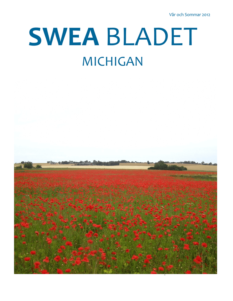 Vår och Sommar 2012 SWEA BLADET MICHIGAN • www.sweamichigan.org • VÅR & SOMMAR 2012 • STYRELSEN 2012: Lena Fransén-Dean Ordförande Pernilla Sullivan Medlemskap Lotta Olvegård Vice Ordförande Lena Kullin Program Marie-Ann Halladay Kassör Lisa Hagerman Program Ingela Oginsky Sekreterare Lena Salomonsson Handelsboden Anna Leijonhielm Julmarknad The Swedish Women’s Educational Association was originally founded by Agneta Nilsson in 1979. SWEA is a registered trademark. All rights reserved. SWEA Michigan was founded by Tottie Samuelsson in 1991. SWEA Bladet Michigan is a publication of the SWEA Michigan chapter. © 2012, www.sweamichigan.org. All rights reserved. Kontakta Styrelsen: Program: Lena Kullin [email protected] Ordförande: Lena Fransén-Dean [email protected] [email protected] Program: Lisa Hagerman [email protected] Vice Ordförande: Lotta Olvegård [email protected] Kassör: Marie-Ann Halladay [email protected] Sekreterare: Ingela Oginsky [email protected] Medlemskap: Pernilla Sullivan [email protected] Handelsboden: Lena Salmonsson [email protected] Redaktör: tbd [email protected] Övriga Ansvariga: Rumsförmedlare: Aleks Syljebeck [email protected] Webbmoster: Pernilla Sullivan [email protected] SWEA Cares: Agneta Malmgren [email protected] SWEA Michigan på Facebook! Om du redan är med på Facebook, kan du söka “SWEA Michigan”. Endast SWEA Michigan medlemmar har tillträde och rätt att läsa inläggen samt lägga upp egna bilder eller kommentera det senaste SWEA jippot. Vi syns på Facebook! Julmarknad: Anna Leijonhielm [email protected] 2 • NYA SWEA BLADET • Bilden på framsidan visare ett vallmofält nedanför Omberg i Östergötland och är tagen av Lena Fransén-Dean. Kalender: Innehåll: September Torsdag 6 Tisdag 18 Onsdag 19 Styrelsen 2 Kalender Oktober 3 Några ord från redaktören 4 Ordförandes rader 5 Presentation av nya medlemmar 6 Adressändringar 7 Lotta Olvegård berättar vad hon gör i höst 8 Måndag 1 Fredag 5 Torsdag 10 Tisdag 16 tbd Lördag 20 Julmarknad 9 Årsmötet 10 Motown Historical Museum 11 Middagsteater I Northville 12 Biokväll med Solsidan 13 Valborgsfirande I Kensington Metropark 14 Regionmöte i Toronto 15 Toronto Islands 17 RM - En tillbakablick 17 Flower day på Eastern Market 20 Caroline Jansson - perfekt SAT! 21 Race for the Cure 22 Nationaldagsfirande med Svenska klubben 24 Diskuterat på styrelsemötena 25 Till mine av… 26 SWEA Internationals fototävling 28 Bokklubb 29 Några Sweor berättar om sin sommar 30 Sommar I P1 - Christina Lampe-Önnerud 31 Agneta Nilsson får honorärtitel 34 Receptsidan - Eller vad gott vi ätit på styrelsmötena! 35 Svenska skolan, Handelsboden, Dokument efterlyses 36 Höstens evenemang på University of Michigan 37 Utbildningsprogram befriade 38 SWEA I korthet 39 Katastrofberedskap 40 Tillbaka till stan Pyssel - Ann Arbor Pyssel - övrigt Styrelsemöte Middag i Detroit med partners Lunch Filmkväll - Ann Arbor Filmkväll - tbd Cranbrook November Måndag 5 Tisdag 6 Tisdag 13 Fredag 16 Lördag 17 Måndag 19 Tisdag 20 Styrelsemöte Lunchträff - IKEA Konsert Ann Arbor Förberedelser inför Julmarknad SWEAs Julmarknad Föreläsning, Ninas resa Föreläsning, Strindberg December Tisdag 4 Måndag 10 Adventskaffe Styrelsemöte Vi förbehåller oss rätten till ändringar i programmet. Evite kommer att skickas ut inför varje aktivitet. Har ni förslag på programpunkter eller kan tänka er att vara värdinna för ett av våra återkommande programpunkter detta år, såsom midsommarfirandet eller Valborg, var vänlig kontakta någon av oss. Med vänlig hälsning, Lisa Hagerman & Lena Kullin SWEA MI Program E: [email protected] • www.sweamichigan.org • VÅR & SOMMAR 2012 • 3 Några ord från redaktören: Redaktör och redaktör... Ja, tyvärr så har Lena Duffy avgått som redaktör av SWEA Bladet. Lena lade ribban så otroligt högt med sina mycket proffsiga SWEA Blad, så inga jämförelser tack. Men Lena har många järn i elden och tyvärr så var detta ett som fick stryka på foten. Till vardags är Lena Senior Art Director på en marknadsföringsfirma, mamma till två små pojkar samt ska springa sitt första maraton i höst i Detroit. Vi säger ett stort tack till Lena, för den tid vi fick av dig och önskar dig lycka till med träning och tävling! Lena - kanske kan du skriva om din maratonupplevelse? Vi började naturligtvis med årsmöte i Februari. I maj var det dags för RM, det vill säga regionmöte i Toronto som också passade på att fylla 30 år, dit tre från Michigan åkte. Vi har varit på middagsteater, gått på Eastern Market, varit med i Race for the Cure osv. Några av er blev ombedda att skriva om sin sommar, vilket ni också kan läsa om. Vi presenterar våra senaste nya medlemmar, vissa har varit med sedan förra året men som inte har presenterats tidigare. Vi minns också några av våra förre detta medlemmar som tyvärr har gått bort, alla för tidigt. Det är en hel del jobb med att få ihop en tidning. Det största är nog att få er medlemmar att bidra med material. Vi har inget speciellt tema för detta nummer, utan det är mer en krönika över vad vi har gjort hittills i år. Och vi har faktiskt gjort en hel del! Stort tack till alla som har bidragit med text och bild. Stort tack också till Anna Lejionhielm som har korrekturläst bidragen varefter de kommit in. Och till slut, för att SWEA Bladet ska kunna fungera så måste vi be er ALLA att bidra med material. Allt är av intresse och som vanligt kommer vi att be någon att skriva efter varje tillställning som vi har. Fast ännu bättre vore ju om vi hade frivilliga som ställde upp och erbjöd sig istället. Själv gör jag detta under devisen ”hellre än bra”, dvs jag gör så gott jag kan, men perfekt blir det inte. Och om jag kan, ja då kan nog du också! Jag hoppas att ni alla har haft en trevlig sommar, nu väntar en ny spännande SWEA höst! Pernilla Sullivan E: [email protec