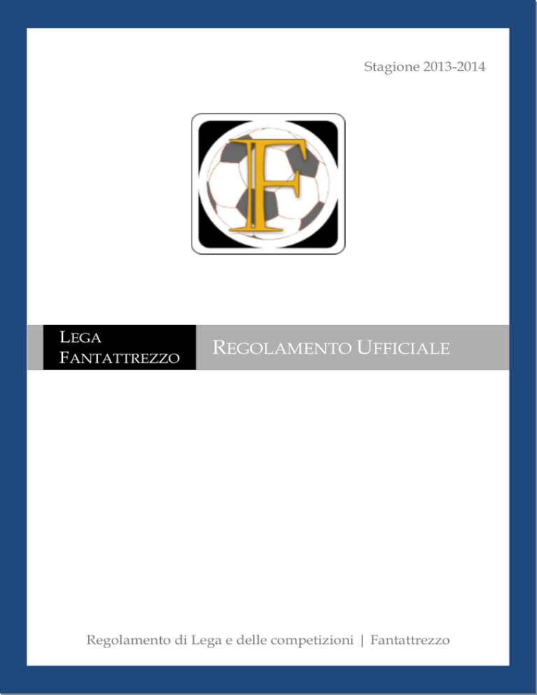 Stagione 2013-2014 LEGA FANTATTREZZO REGOLAMENTO UFFICIALE Regolamento di Lega e delle competizioni | Fantattrezzo Sommario Regole Generali ...........................................................................................................................................................................................................................2 Organi di lega .......................................................................................................................................................................................................................2 Tesoriere di Lega ............................................................................................................................................................................................................2 Pagamenti ..............................................................................................................................................................................................................................3 Società ...........................................................................................................................................................................................................................................3 Rose .........................................................................................................................................................................................................................................3 Riserve ..............................................................................................................................................................................................................................4 Formazioni.............................................................................................................................................................................................................................4 Consegna della formazione .........................................................................................................................................................................................5 Società del morto ..................................................................................................................................................................................................................6 Abbandono ............................................................................................................................................................................................................................6 Competizioni ...............................................................................................................................................................................................................................7 Campionato ...........................................................................................................................................................................................................................7 Voti e punteggi ...............................................................................................................................................................................................................8 Sostituzioni ......................................................................................................................................................................................................................9 Partite rinviate ................................................................................................................................................................................................................9 Coppa di Lega .......................................................................................................................................................................................................................9 Tempi supplementari ..................................................................................................................................................................................................10 Rigori ..............................................................................................................................................................................................................................10 Fantanazionali.....................................................................................................................................................................................................................11 Supercoppa di Lega ...........................................................................................................................................................................................................11 Fantacoppe LFG .................................................................................................................................................................................................................11 Mercato .......................................................................................................................................................................................................................................12 Mercato Libero ....................................................................................................................................................................................................................12 Asta in busta chiusa ...........................................................................................................................................................................................................13 Trasferimenti e contrattazioni ...............................................................................