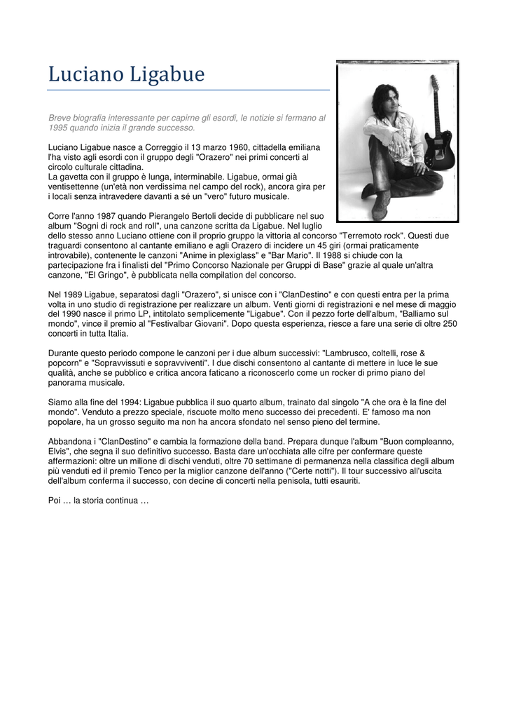 album "Sogni di rock and roll", una canzone scritta da Ligabue. Nel luglio