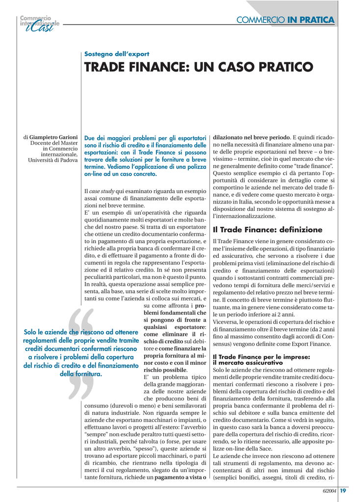 TRADE FINANCE: UN CASO PRATICO