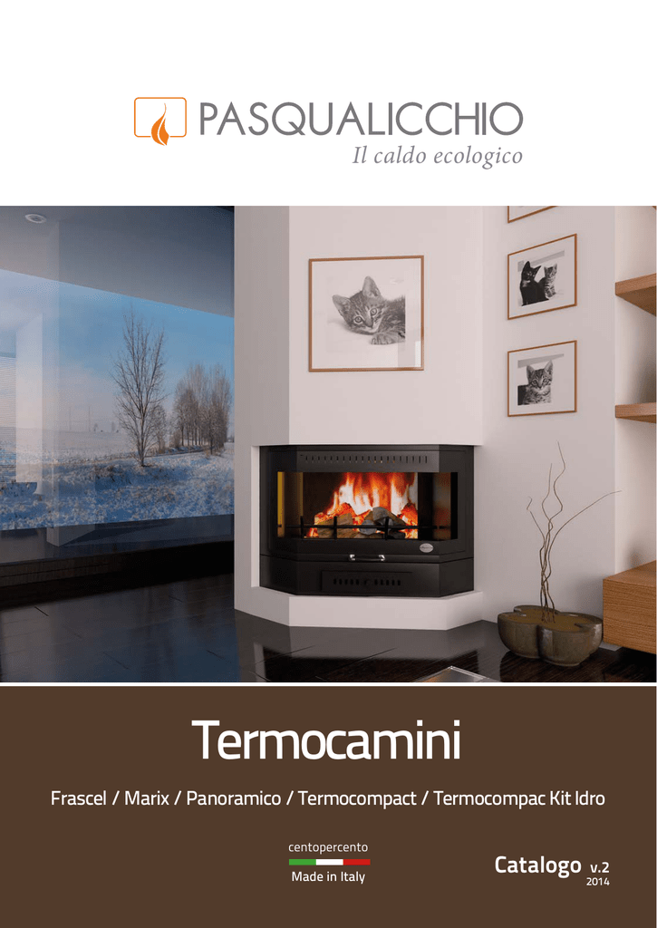 Il caldo ecologico Termocamini Frascel / Marix / Panoramico / Termocompact / Termocompac Kit Idro centopercento Made in Italy Catalogo v.2 2014 Il caldo ecologico Il nostro sistema di gestione è certificato TUV secondo la Norma UNI EN ISO 9001 Qui innovazione, qualità e conoscenza si incontrano per dare vita a prodotti per il riscaldamento senza trascurare il rispetto per la natura. Associazioni di categoria Termocamini Frascel » Marix » Panoramico » Termocompact » Termocompac Kit Idro Catalogo v.2 www.pasqualicchio.it | [email protected] 2 Nel cuore delle Forche Caudine, in provincia di Benevento sorge Paolisi, piccolo comune del sud Italia che accoglie la Pasqualicchio sin dagli anni ‘70. L’azienda può contare su una struttura di oltre 18.000 metri quadrati composta da un centro specializzato in ricerca e sviluppo, tre impianti produttivi e uno studio di progettazione all’avanguardia. Nel corso degli anni il genio imprenditoriale dei fratelli Francesco e Ruggiero Pasqualicchio si è affermato con forza sui mercati nazionali ed esteri grazie ad una politica aziendale dinamica, tipica del market-pull. Sono state le richieste dei clienti soddisfatti a dare l’imprinting giusto per puntare su una maggiore qualità dei prodotti. Indispensabile è stato giocare la carta del know-how termo-tecnico come parte integrante nel DNA dell’impresa. Per la Pasqualicchio, innovazione, qualità e conoscenza vanno di pari passo, tutto al fine di offrire prodotti sempre più vicini ai bisogni del cliente. E’ per questo che l’azienda è in costante ricerca di sinergie e collaborazioni con i principali fornitori di componentistica e macchinari all’avanguardia. Il traguardo di Francesco e Ruggiero Pasqualicchio è quello di diffondere una cultura green, portando l’efficienza energetica in ogni casa, creando una vera e propria opportunità di sostenibilità ambientale. La nostra storia Da piccolo laboratorio a marchio internazionale La passione per il “focolare” domestico della famiglia Pasqualicchio è la pietra miliare di un’esperienza imprenditoriale che affonda le sue radici nella produzione artigianale di stufe a legna per uso domestico. A dare il via oltre quarant’anni fa è stato Vito Antonio Pasqualicchio. Nel suo piccolo laboratorio iniziavano a prendere forma idee innovative che hanno raggiunto livelli industriali negli anni novanta, quando Francesco Pasqualicchio e, dopo il fratello, Ruggiero, subentrano alla guida dell’azienda. vision Portare l’efficienza energetica in ogni casa 1971 - 1980 Vito Antonio Pasqualicchio dal suo piccolo laboratorio artigianale inizia a creare le prime stufe a legna. I suoi prodotti riscuotono subito un grande successo. Ciò incoraggia Vito Antonio ad introdurre innovazioni e ad ampliare la sua bottega. 1981 - 1989 Grazie ad un numero sempre crescente di clienti soddisfatti e alla voglia di mettersi in discussione la produzione inizia ad estendersi su nuovi prodotti quali termocamini e caldaie. 1990 - 1999 Una forte domanda esige una radicale trasformazione dell'attività: nel corso degli anni novanta l'impresa a conduzione familiare diventa azienda. Nel 1996 nasce il brand Pasqualicchio. Nel 1998 viene eretto il primo impianto produttivo da oltre 6.000 mq. mission Individuare soluzioni rispettose per l’ambiente creando prodotti dai consumi ridotti, alti rendimenti e basse emissioni La Pasqualicchio utilizza da sempre materiali all’avanguardia per proporre soluzioni eco-compatibili. Abbiamo fatto molta strada dalla creazione del nostro primo prodotto oltre 40 anni fa. Il nostro obiettivo è individuare soluzioni rispettose per l’ambiente creando prodotti dai consumi ridotti, alti rendimenti e basse emissioni. I nostri prodotti sono innovativi, senza trascurare l’ambiente grazie all’utilizzo di combustibili derivanti da fonti rinnovabili in modo da ridurre l’inquinamento. 4 2000 - 2007 2008 - 2012 L'esperienza decennale nel campo della termo-tecnica e l'engineering dei processi aziendali danno un fortissimo impulso al marchio Pasqualicchio. L'azienda diventa leader nella produzione di caldaie, termostufe, termocamini e generatori d'aria. Nel 2008 sorge il secondo stabilimento da oltre 14.000 mq dotato di un centro specializzato in Ricerca e Sviluppo ed uno studio di progettazione all'avanguardia. 5 Centro ricerca & sviluppo certificazioni Innovare, sperimentare, scoprire,un unico obiettivo: l’efficienza assoluta Garanzia Certificata Centro ricerca e sviluppo Le Certificazioni Il Centro Ricerca e Sviluppo Pasqualicchio è dotato di avanzati laboratori tecnologici e si avvale della professionalità di esperti ricercatori e giovani talenti universitari. Attraverso queste risorse e queste strutture, sviluppa le iniziative previste nell’ambito del Programma di ricerca aziendale G.E.Pro. (Green Energy Project), affrontando l’analisi e l’evoluzione delle tecnologie con l’obiettivo di produrre energia pulita a basso costo. Come si ottengono le Certificazioni di prodotto? L’approccio al programma è prettamente sperimentale. In una prima fase si effettua uno studio approfondito delle tecnologie, dei processi e dei sistemi all’interno dei laboratori. L’area sperimentale dispone di impianti di prova dedicati allo studio e ai test sull’ aerodinamica delle fiamme, movimentazione delle biomasse solide, combustione e trattamento fumi. Nella fase due si arriva ad una prova a livello di prototipo delle macchine sperimentali, che poi giungeranno ad un’applicazione industriale una volta superati i vari test presso i più importanti Istituti Europei di Certificazione. Investimenti crescenti in Ricerca & Sviluppo Dal 1996 Pasqualicchio ha aumentato costantemente le attività di ricerca e sviluppo di tecnologie innovative con un incremento rispetto allo scorso anno di circa + 18%. L’impegno in ricerca e sviluppo è stato così ripartito per circa il 60% all’innovazione nel campo dell’efficienza energetica, ai fini dell